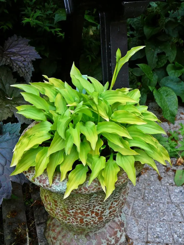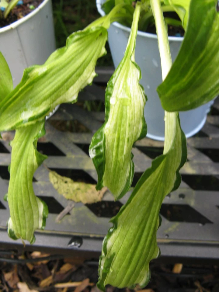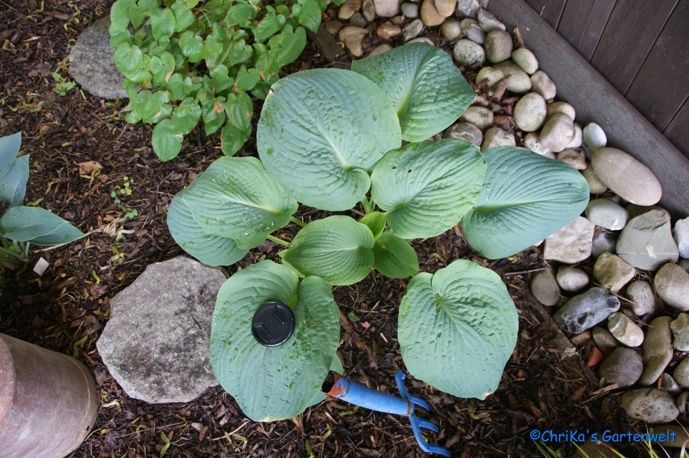 Hier meine 2. namenlose Neuerwerbung, erst mit Trockenheitsschäden, jetzt im Regen, aber sie bastelt tatkräftig an einer Blüte: