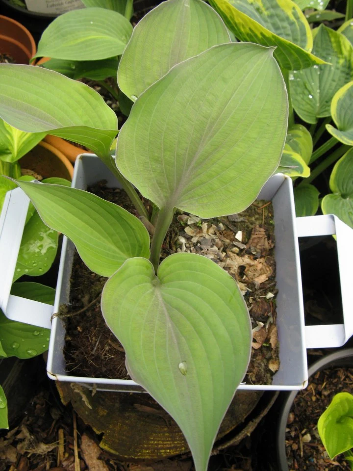 • *lach* Cherry Berry hat den Kragen eigentlich nur, weil die Blätter sich nach dem Einpflanzen noch nicht wieder aufgerichtet haben ;-) . Vielleicht ist sie ja traurig, daß sie Chrisel verlassen mußte. Aber ich hab da noch ein ganz besonderes Schätzchen, die "Timeless Beauty" (winke an Chrisel) und die ist noch sooooo klein, daß nicht mal eine Schnecke davon satt werden würde - die hat auch so einen Kragen :D