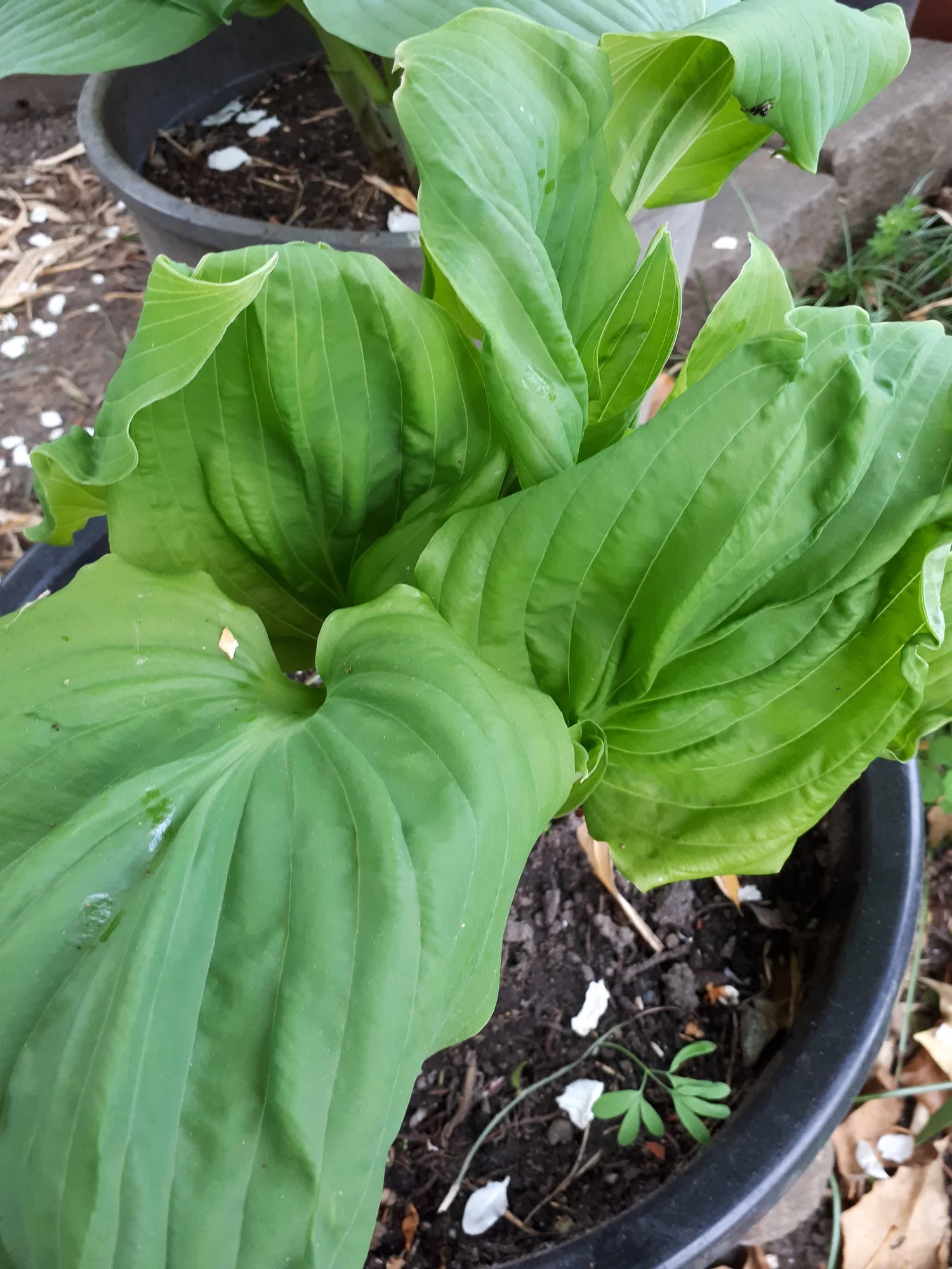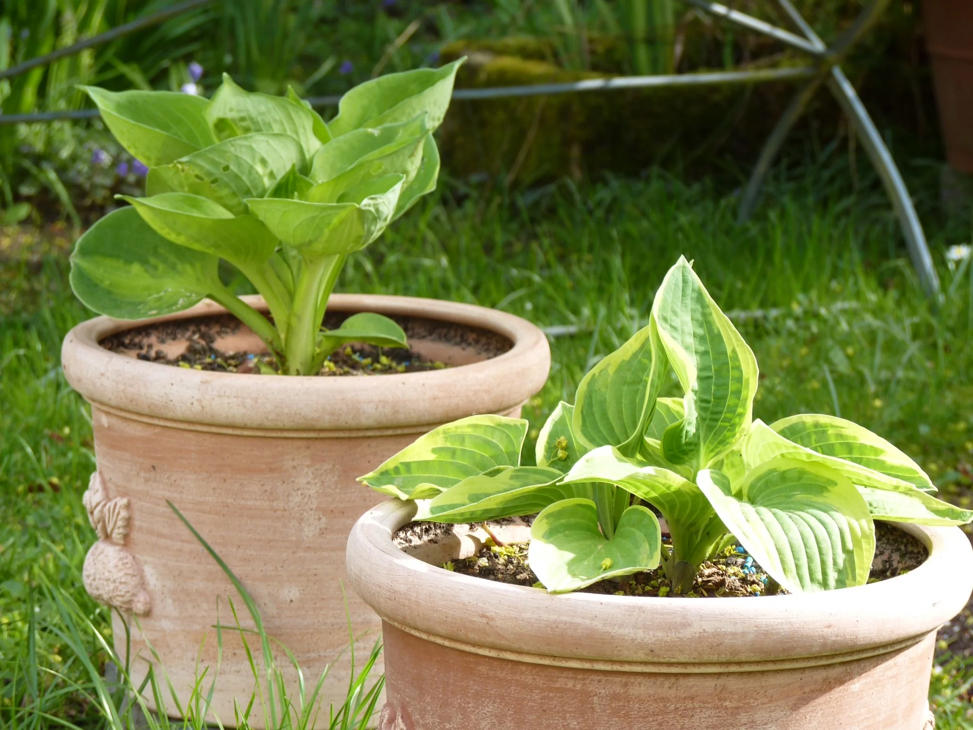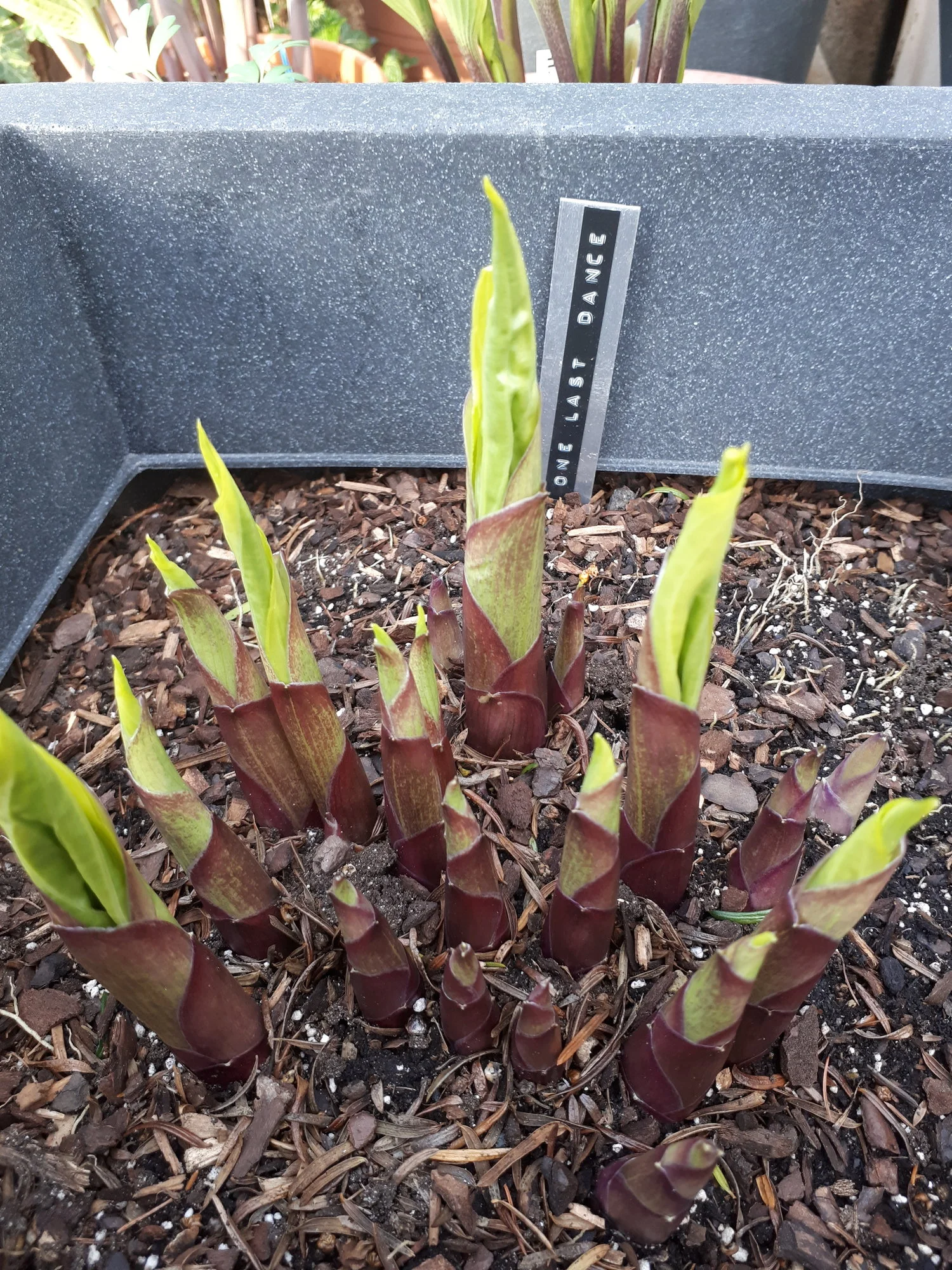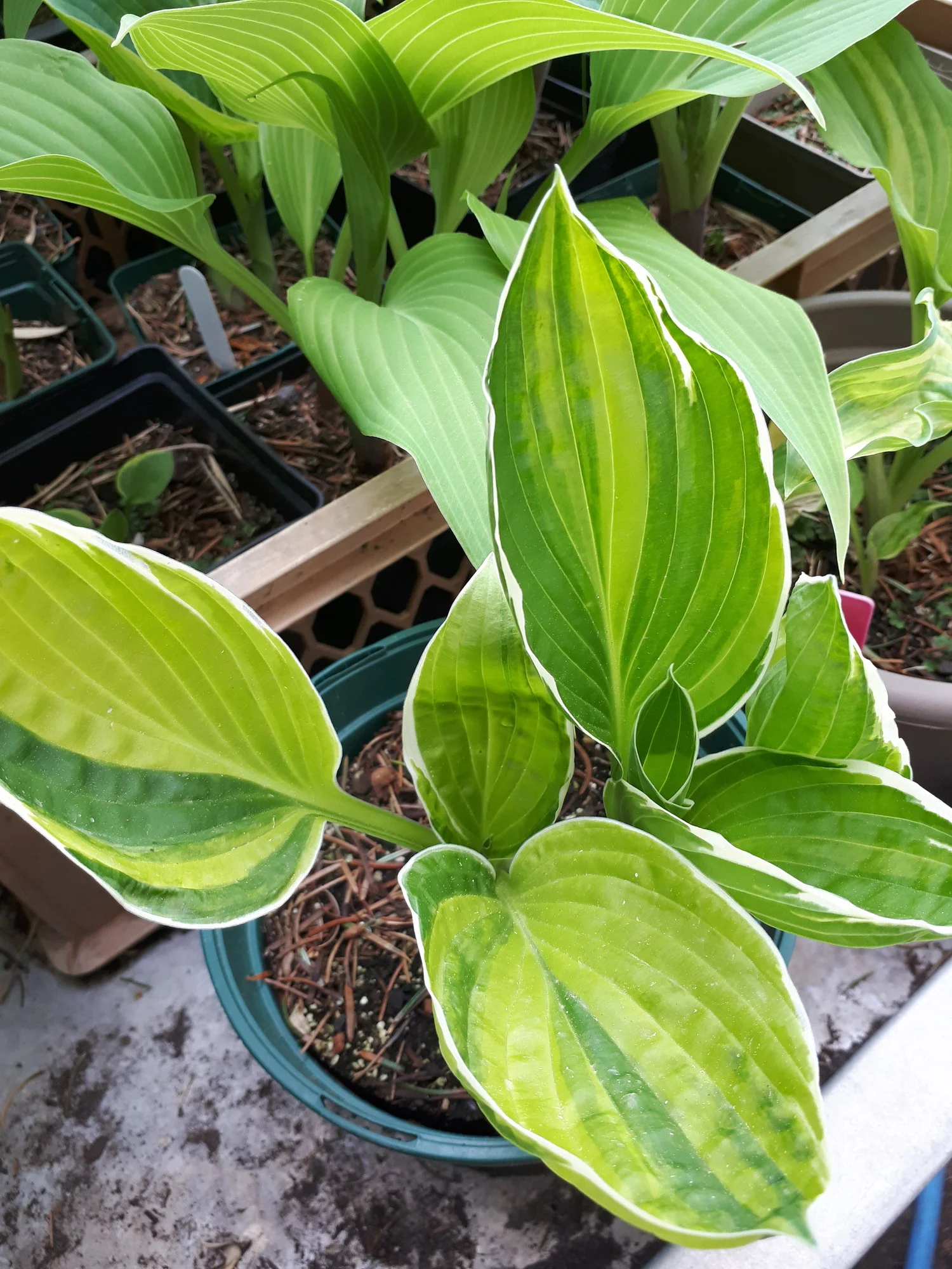Meine Hostas in Töpfen habe ich weiterhin draußen stehen, auch wenn sie schon teilweise recht weit ausgetrieben sind, ja eine hat sogar schon eine Blüte angesetzt.
