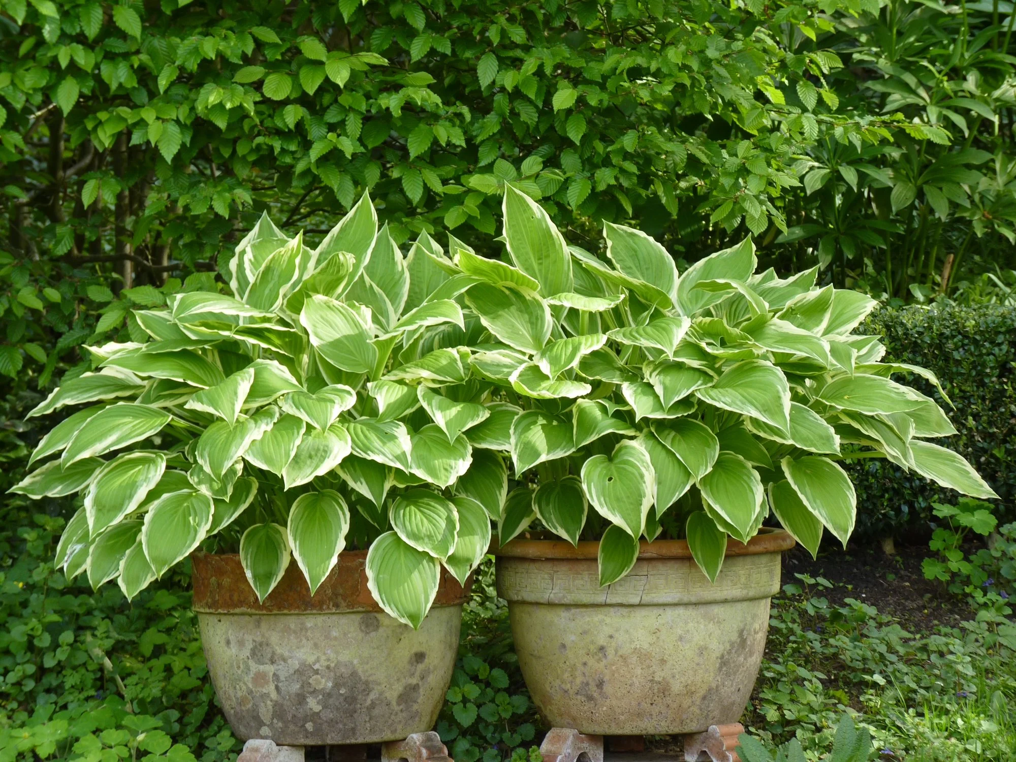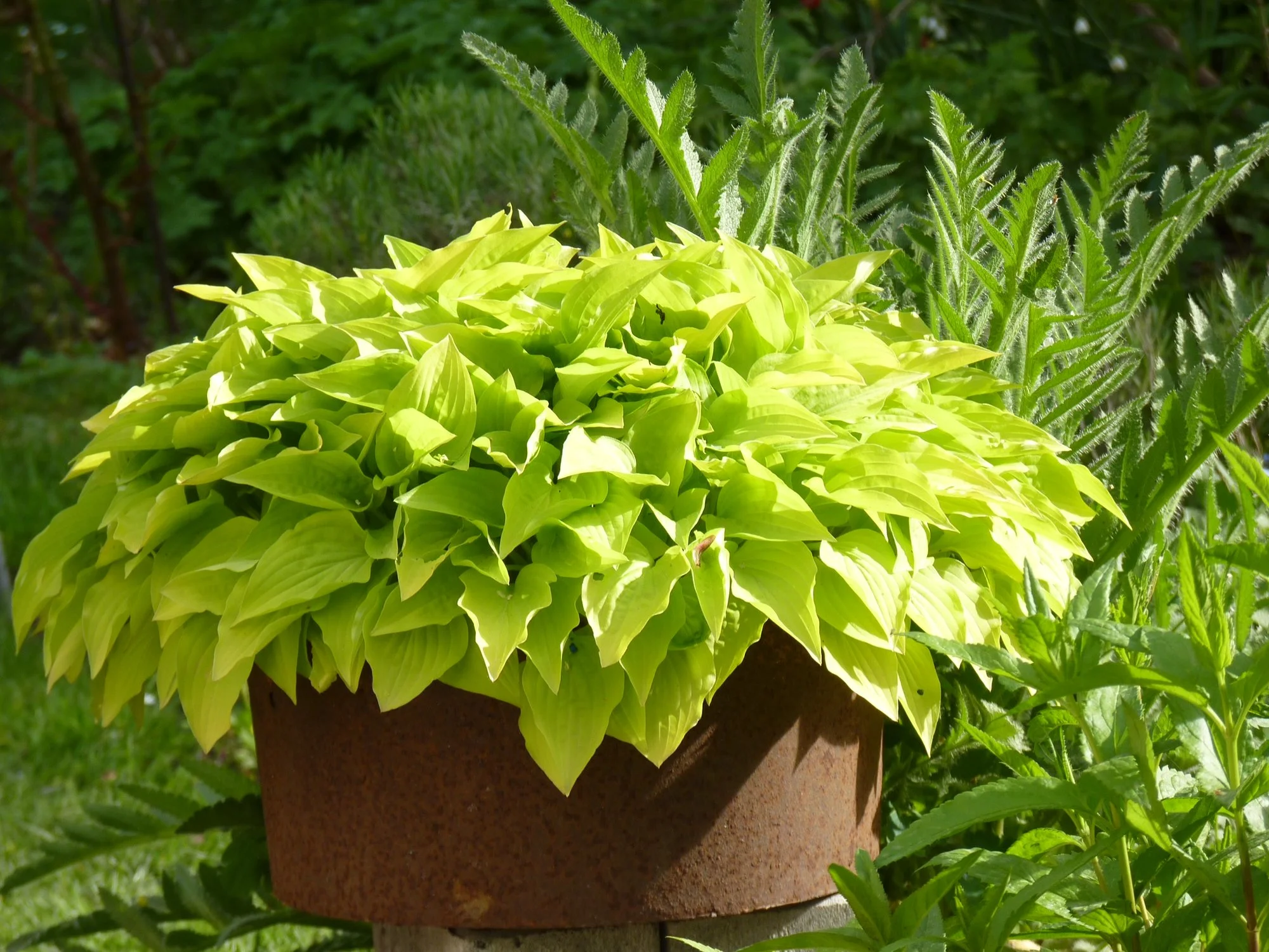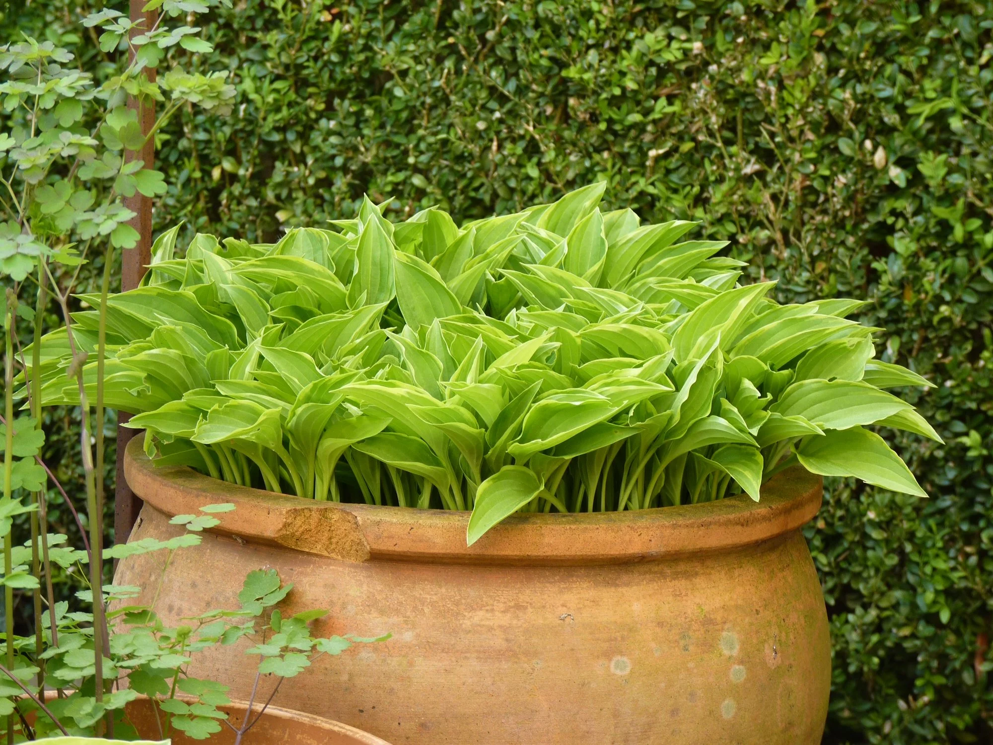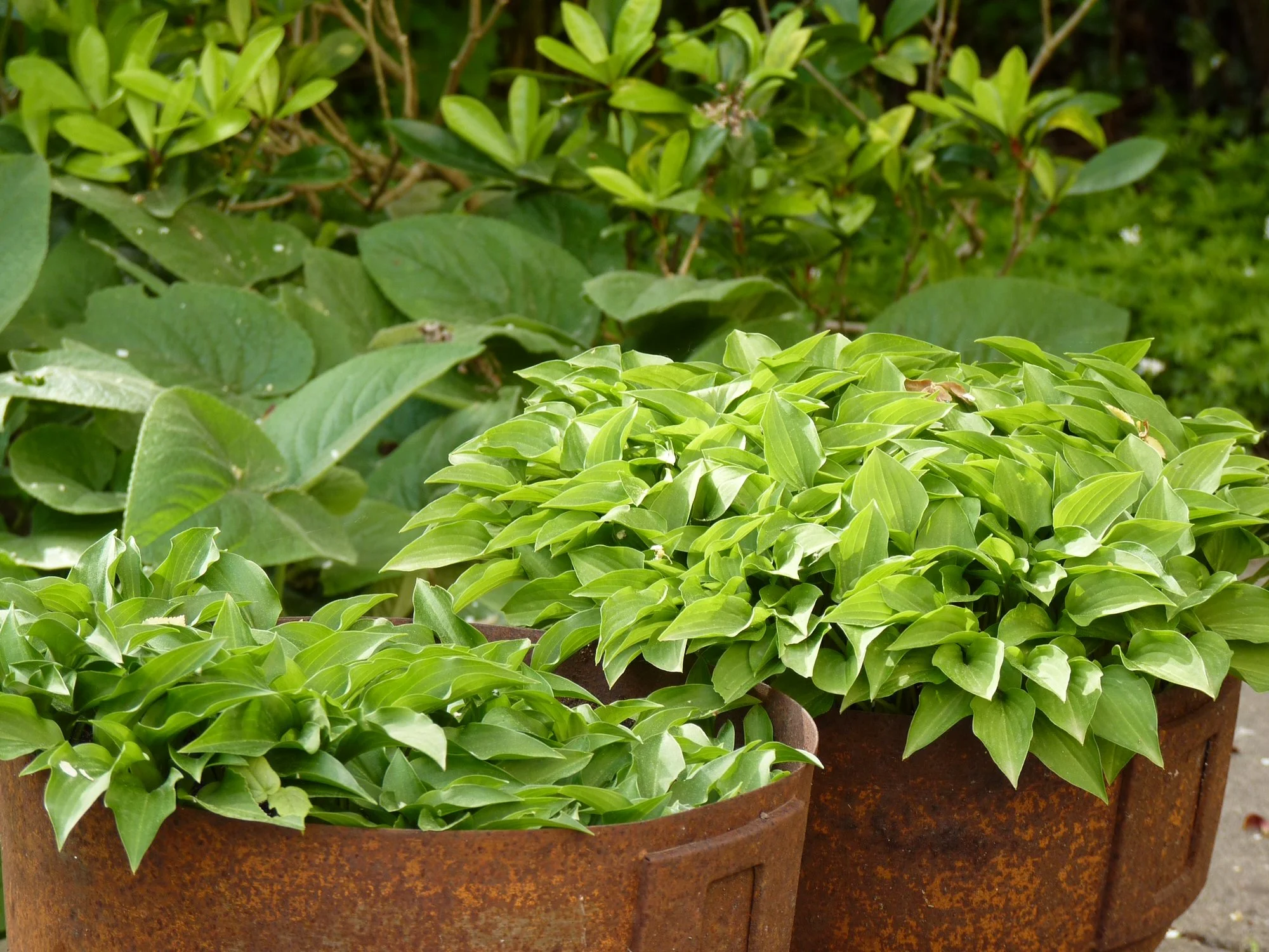 Meine Hostas in Töpfen habe ich weiterhin draußen stehen, auch wenn sie schon teilweise recht weit ausgetrieben sind, ja eine hat sogar schon eine Blüte angesetzt.