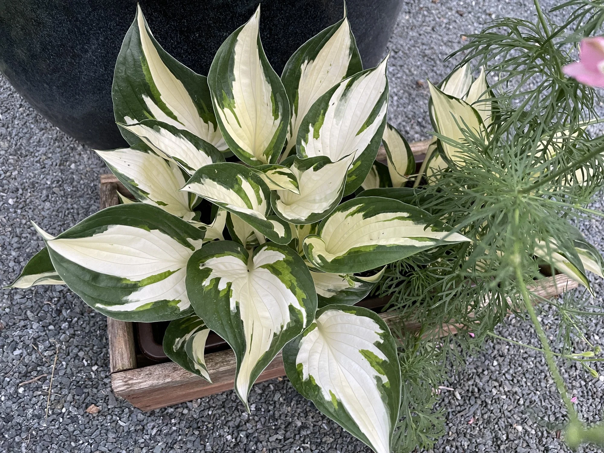 Seit kurzem auch 2 tolle Streaker: Galaxy und Confused Angel, von denen erhoffe ich in den nächsten Jahren viele bunte Hosta-Kinder