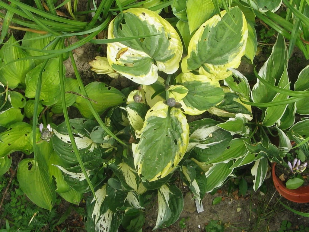 Inzwischen faszinieren sie mich. Ich mag diese Vielfalt, die ganz kleinen und die riesigen, die mit grünen Blättern, mit grün-weißen Blättern, mit weiß-grünen Blättern, mit blau-grünen, Blättern, mit gelbem oder weißem Rand. Sie sind auch so wunderbar pflegeleicht. Für mich die richtige Faule-Socken-Pflanze, denn sie unterdrückt auch noch Unkraut im Beet.