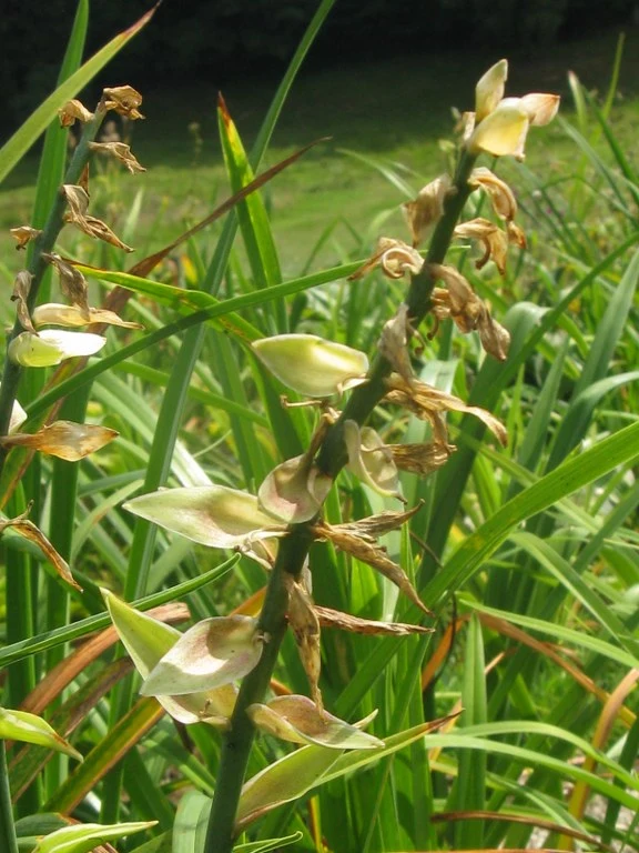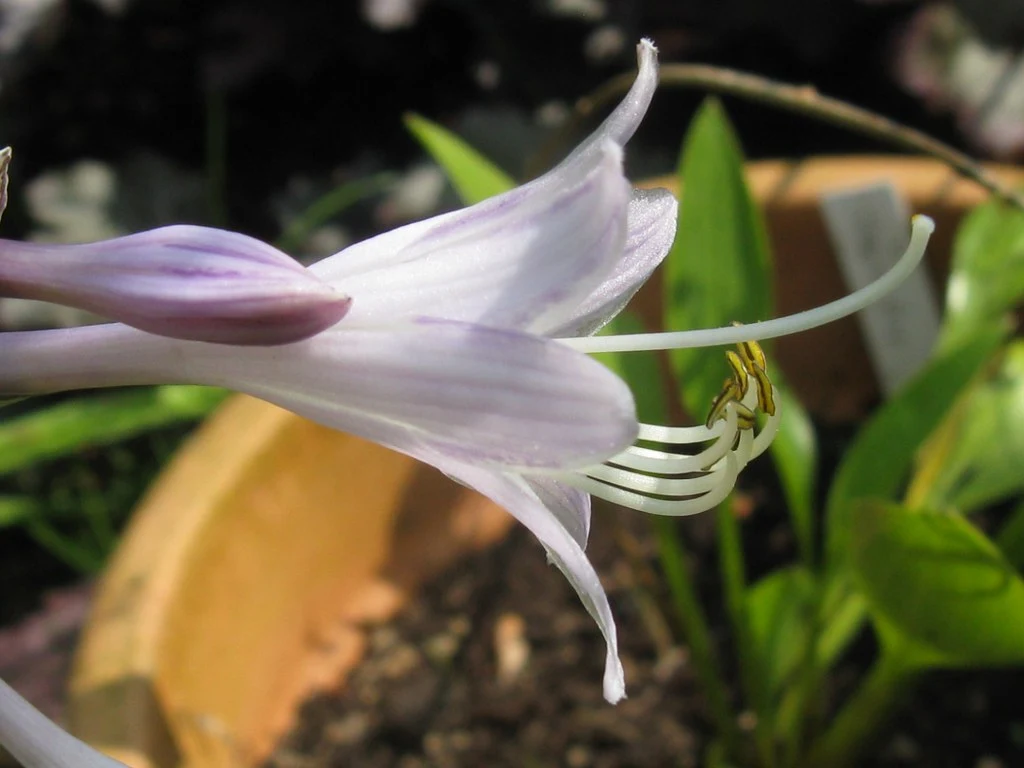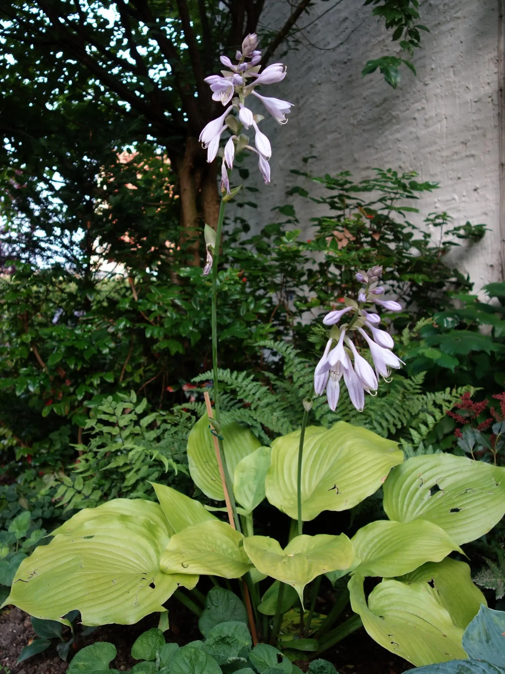 Meine Sum and Substance blüht. Sie hat sich zwar auf nur 2 Blüten beschränkt, diese aber auf so langenschlangen Stengeln, dass einer davon gleich beim erstenbesten Regenschauer zu Boden ging. Zum Glück aber nicht abgeknickt war. Jetzt hab ich der Blüte einen Stützstab verpasst. Das erste Mal, dass ich sowas bei einer Funkie tun musste. :d