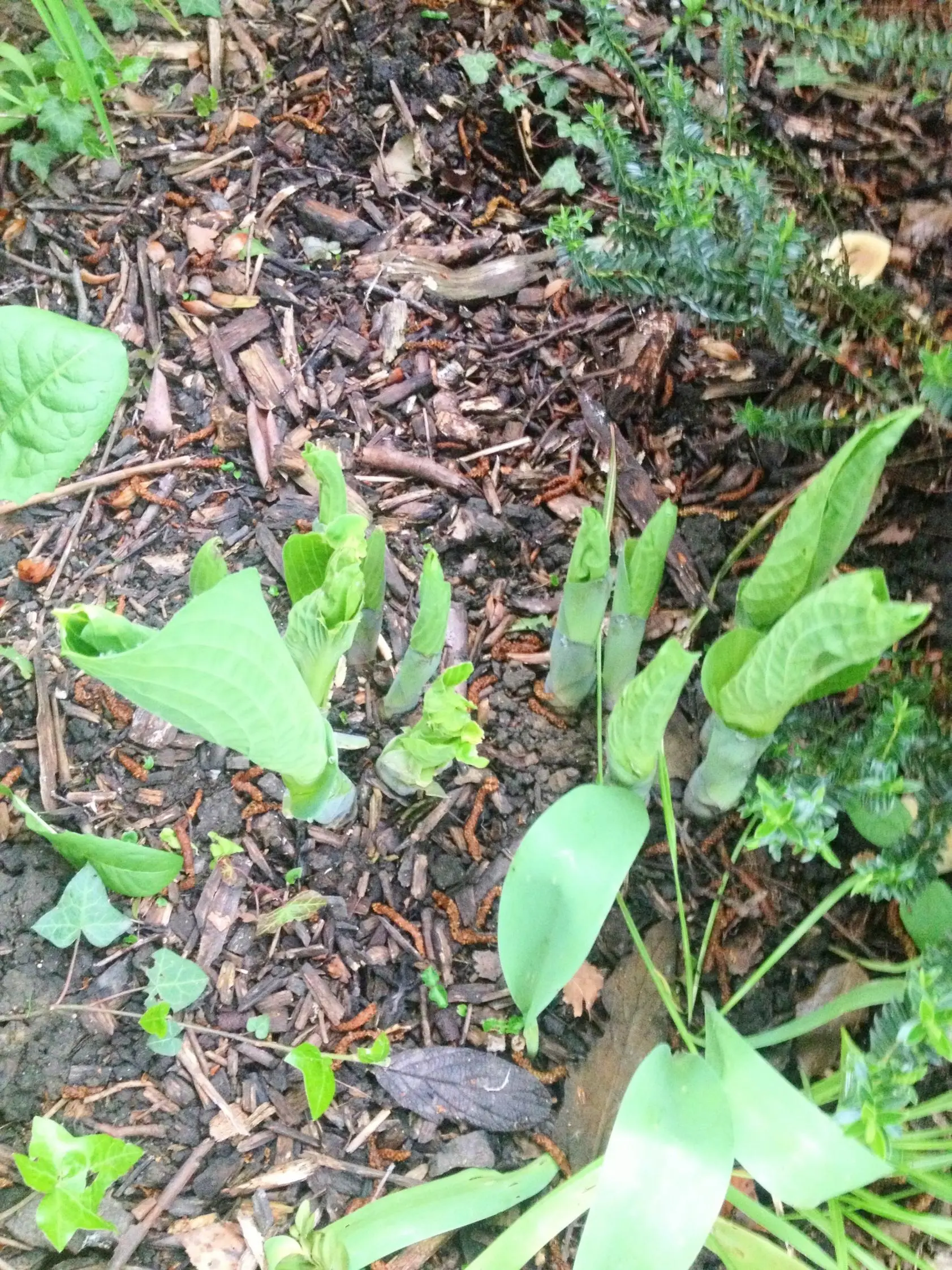 Hab beim heutigen Gartenrundgang festgestellt, dass ich noch mindestens 10 dicke (!) Hostas brauche. Hier lebt mir zu viel wilder Aronstab. Leider riecht er nicht gut. Davon will ich noch einiges ausgraben und durch Hostas ersetzen.