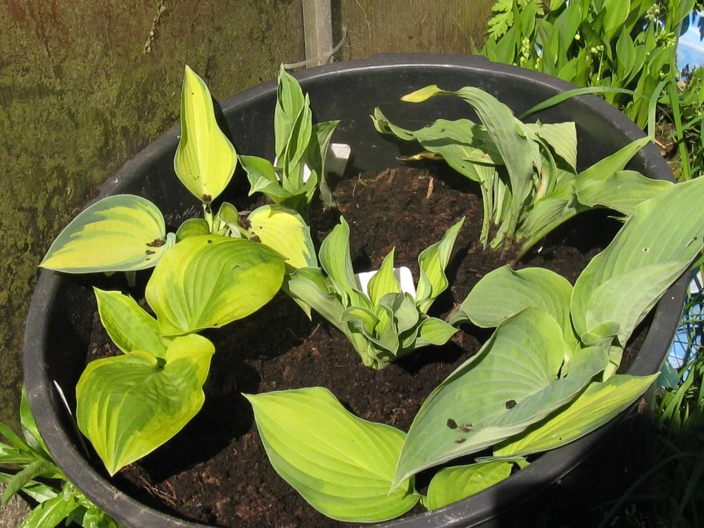 Meine bisherigen stammen fast alle aus Billigstaudenpäckchen von Lidl, und manche hab ich ertauscht. Mal sehen, ob wir die angebliche 'Frances Williams' bestimmen können.