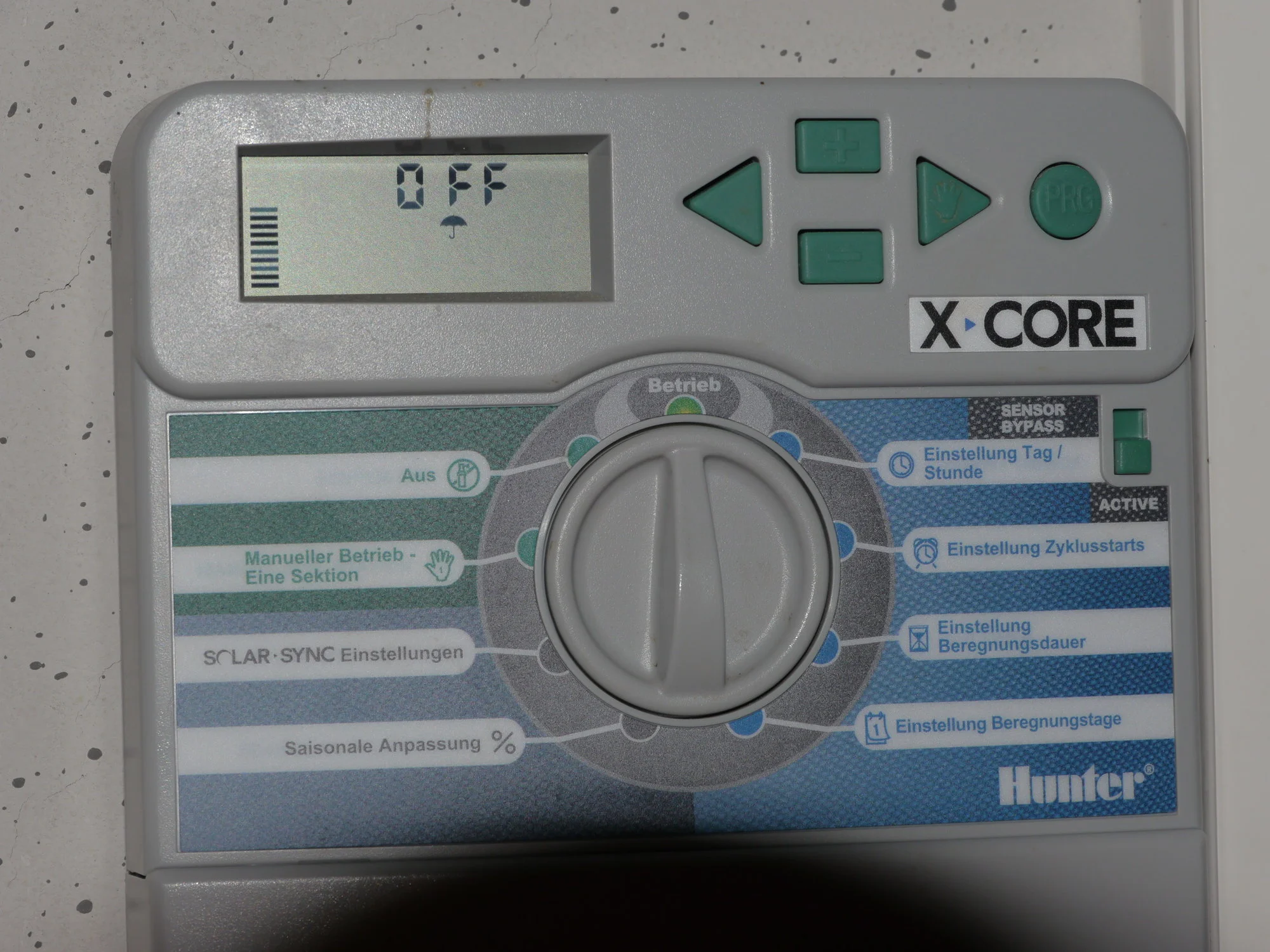 Bei meiner X-Core steht die Regensensor-Anzeige seit Wochen (!) auf "OFF", wie im Foto zu erkennen. Es hat aber seit vielen Tagen nicht mehr geregnet, somit sollte die Regensensor-Deaktivierung längst nicht mehr greifen. Ich habe also auf Verdacht einen neuen Rain-Clik Sensor bestellt und angeschlossen. Und siehe da: gleiches Problem mit dem neuen Sensor. Mehr noch: auch mit völlig abgeklemmten Sensor und sogar mit Überbrückung der Sensoranschlüsse immer dieselbe "OFF"-Anzeige. Ich vermute also, dass der Defekt in der Steuerungseinheit selbst liegt. Weiß jemand hier eine Lösung?