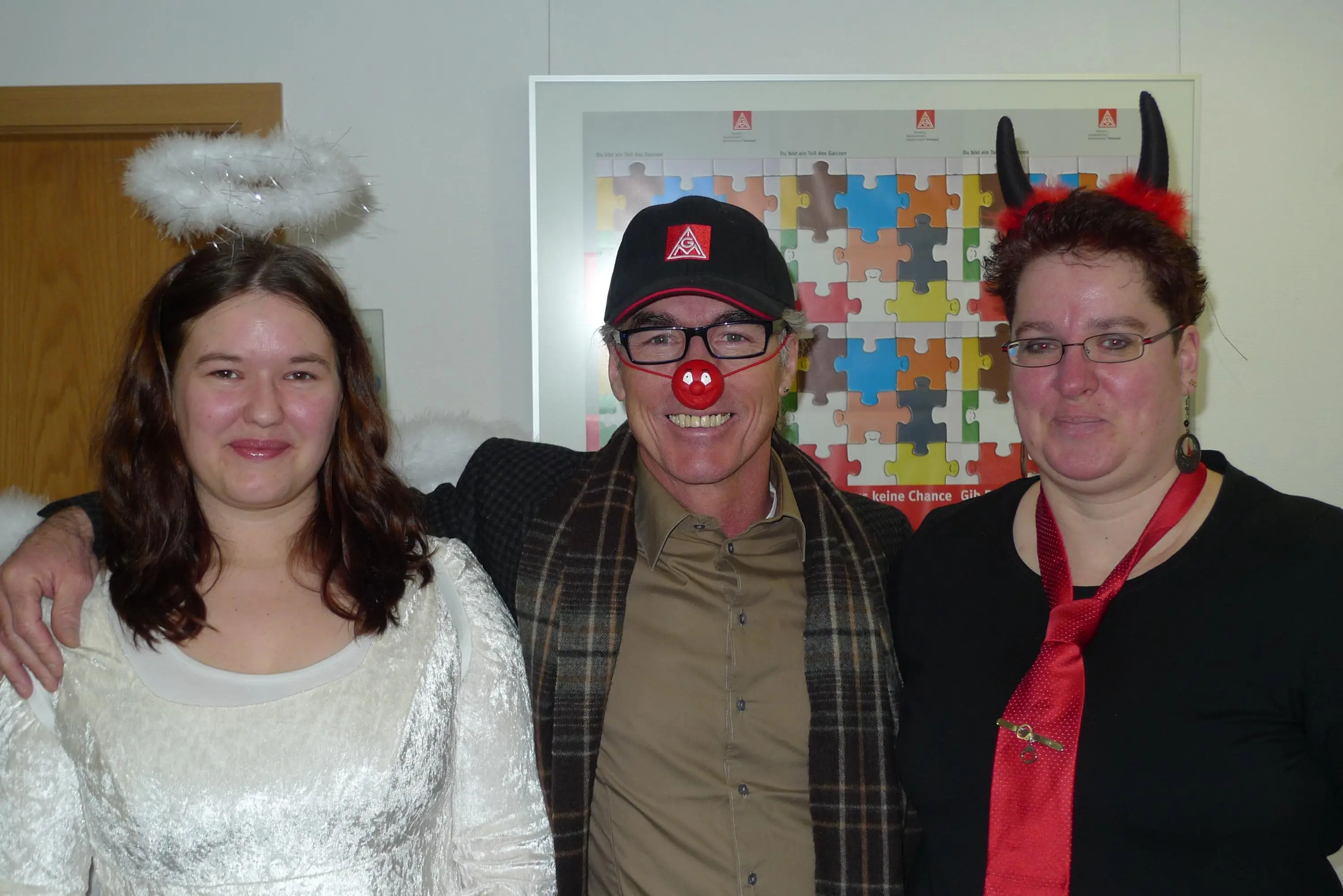 • Ich kichere heute schon den ganzen Tag, weil meine Kollegin und ich als Engel und Teufel verkleidet ins Büro gegangen sind - und keiner wußte davon:grins: