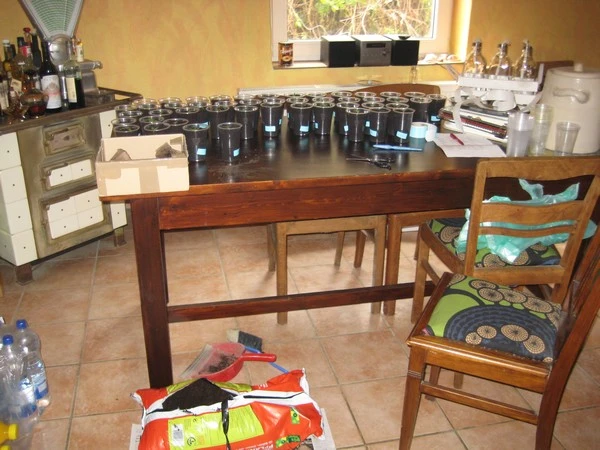 Küche? Da war doch was!? Ich muss noch kochen... Aber erst ein Drittel pikiert. Zur Not kommt in den Plastebecher irgendwas von oben links:d Dann ist eh alles egal......