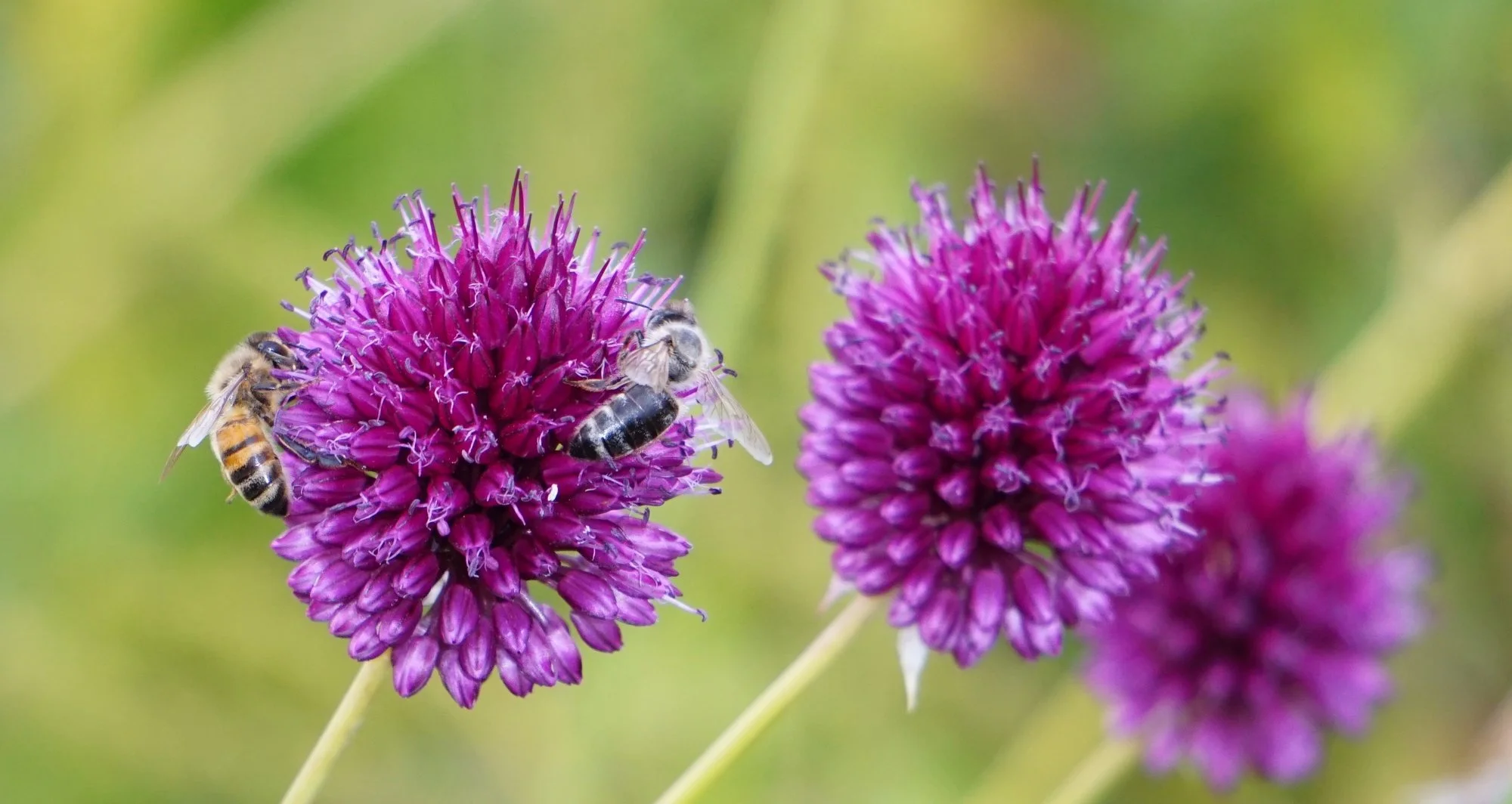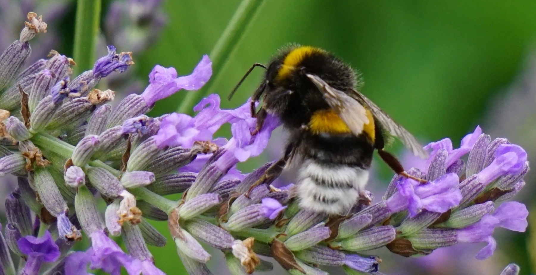 Die unvermeidliche doofe Krabbenspinne hat sich eine Biene gegriffen.