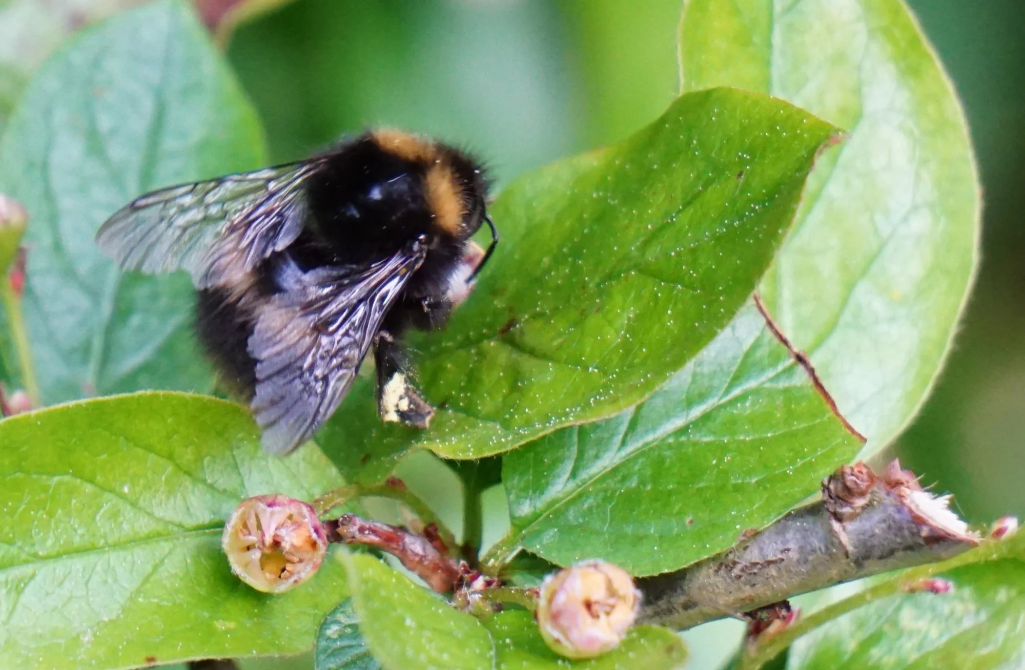 Diese Wanze saß stundenlang bewegungslos auf dem Goldregenblatt und ließ sich die Sonne auf den Panzer scheinen.
