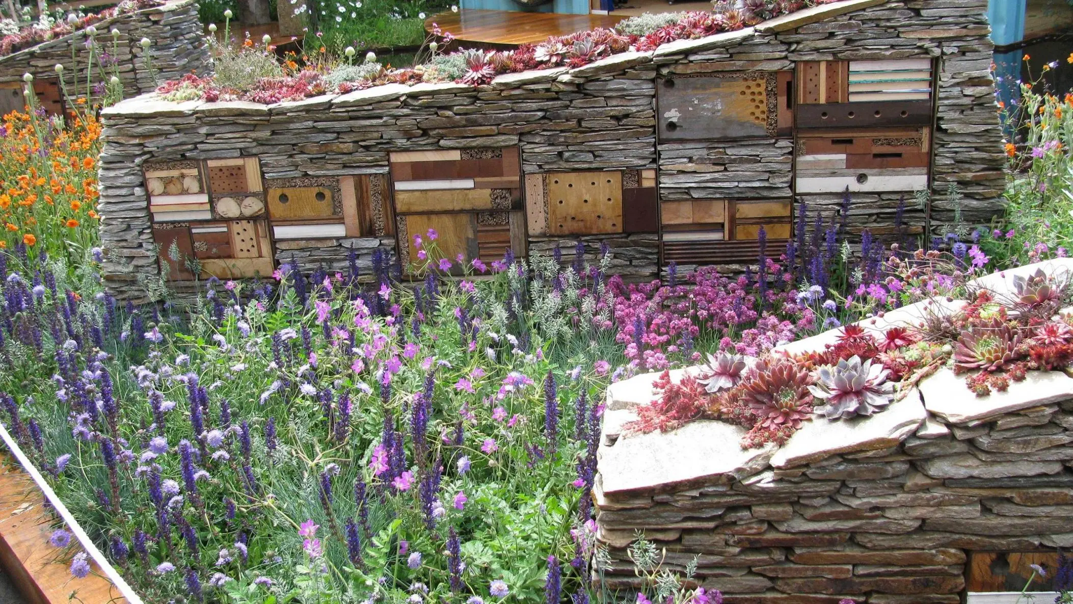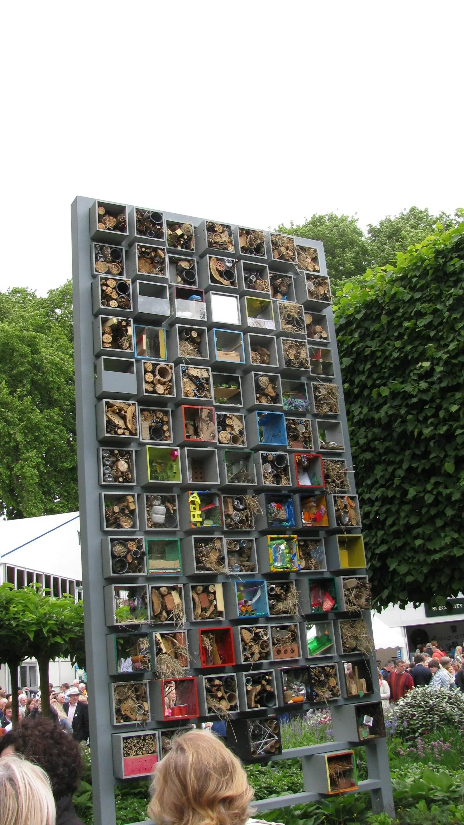 die kästchenmauer ist eigentlich nichts anderes als ein riesengroßes insektenhotel, das design ist allerdings etwas gewöhnungsbedürftig...