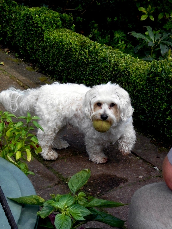 das schönste Spiel für alle Hunde auch für Lumpi ...Bällchen haschen...