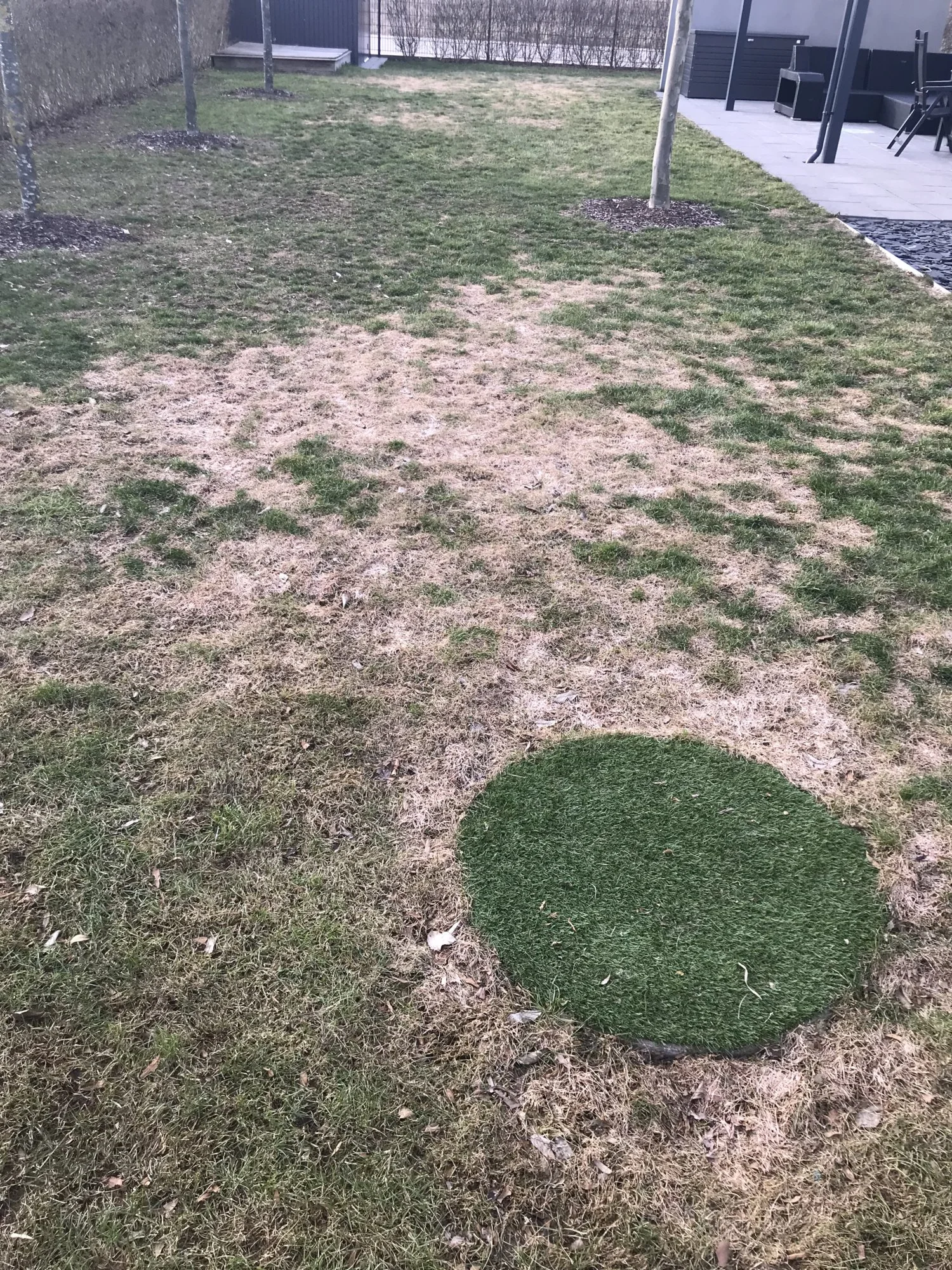 Der ganze Zauber bei einem grünen Rasen ist, düngen, wässern,mähen. Dann schaut der Rasen nicht so aus über den Winter.