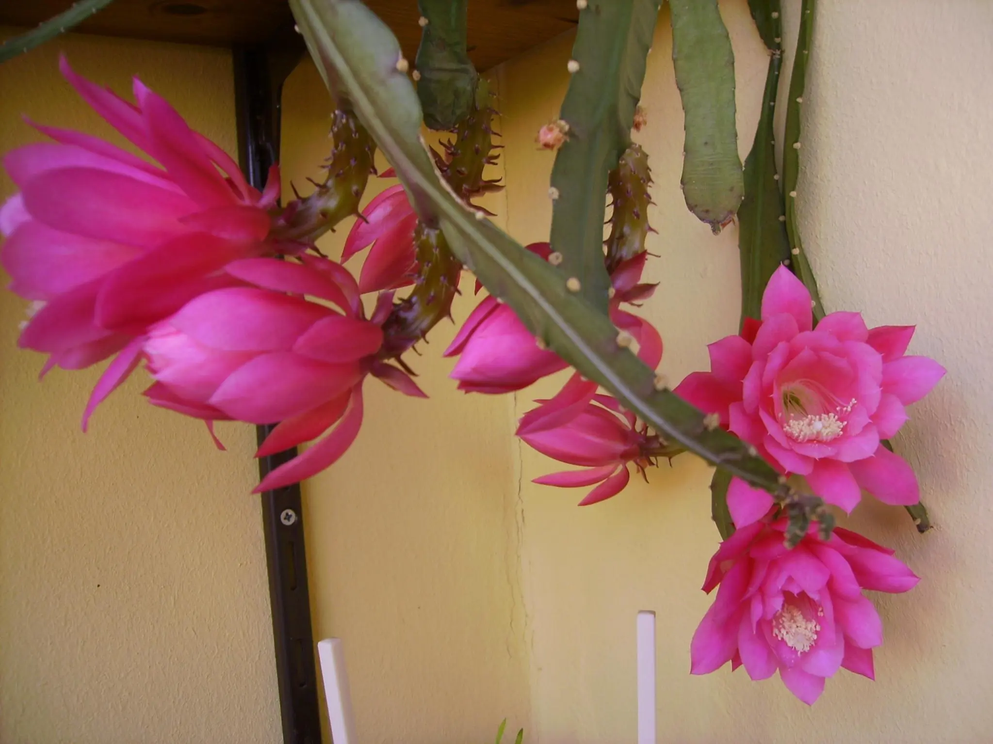 wir pflegen ja auch einen Pott mit den Kakteen, die Frank hat, und zwei Töpfe mit Epiphyllen wie Karin - abgesehen von den roten Epis, die immer blühen.