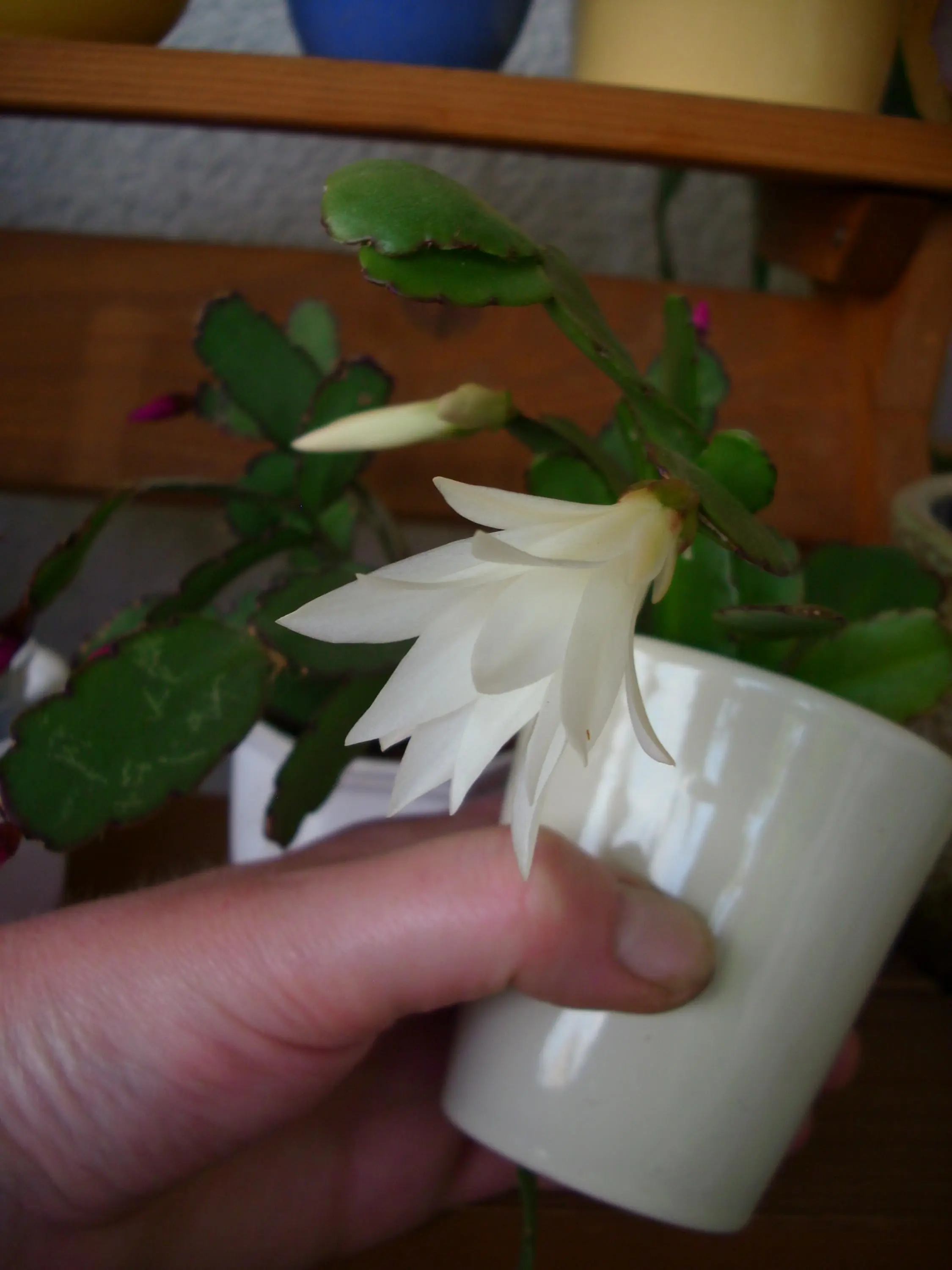 Hallo, habe eben eure schönen Blüten bewundert.Habe da auch einen , der gerade mächtig blüht. Er kann sich nicht entscheiden, ob zu Ostern, oder Weihnachten, dann eben jetzt.