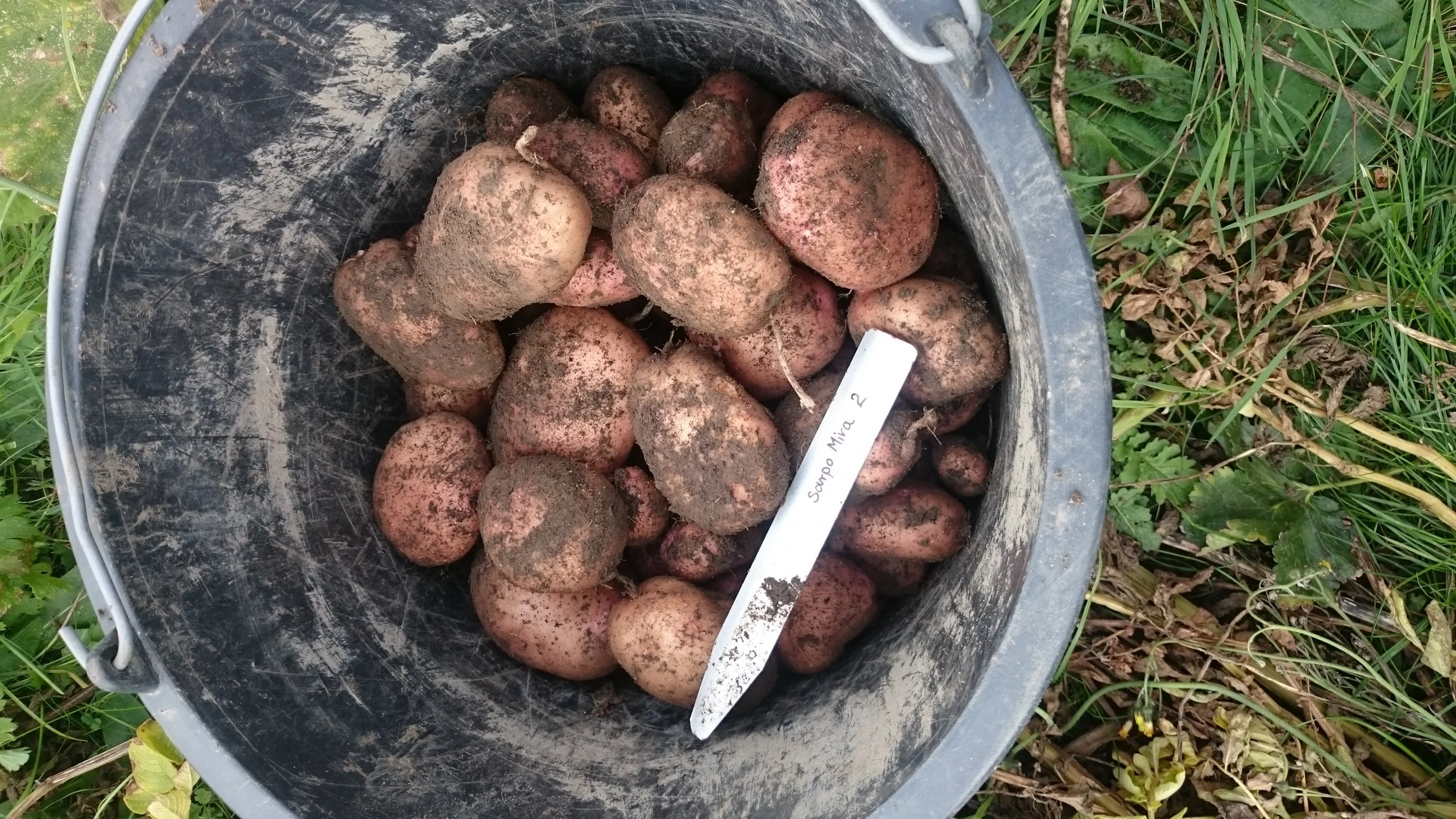 Ich hatte folgende Sorten: Setanta, Axona und Sarpo Mira. Nur eine Sorte pro Kübel. Ich habe viele Wühlmäuse im Garten, von spät reifenden Kartoffeln hätten die im Freiland nichts übrig gelassen, daher habe ich Kübelanbau versucht. Dazu sind die Erträge in den Wannen auf die Fläche bezogen um ein vielfaches höher als im Beet. Selbst der Preis von 6,50 Euro pro neue Mörtel-Wanne aus dem Baumarkt hat sich bereits im ersten Jahr rentiert. :d