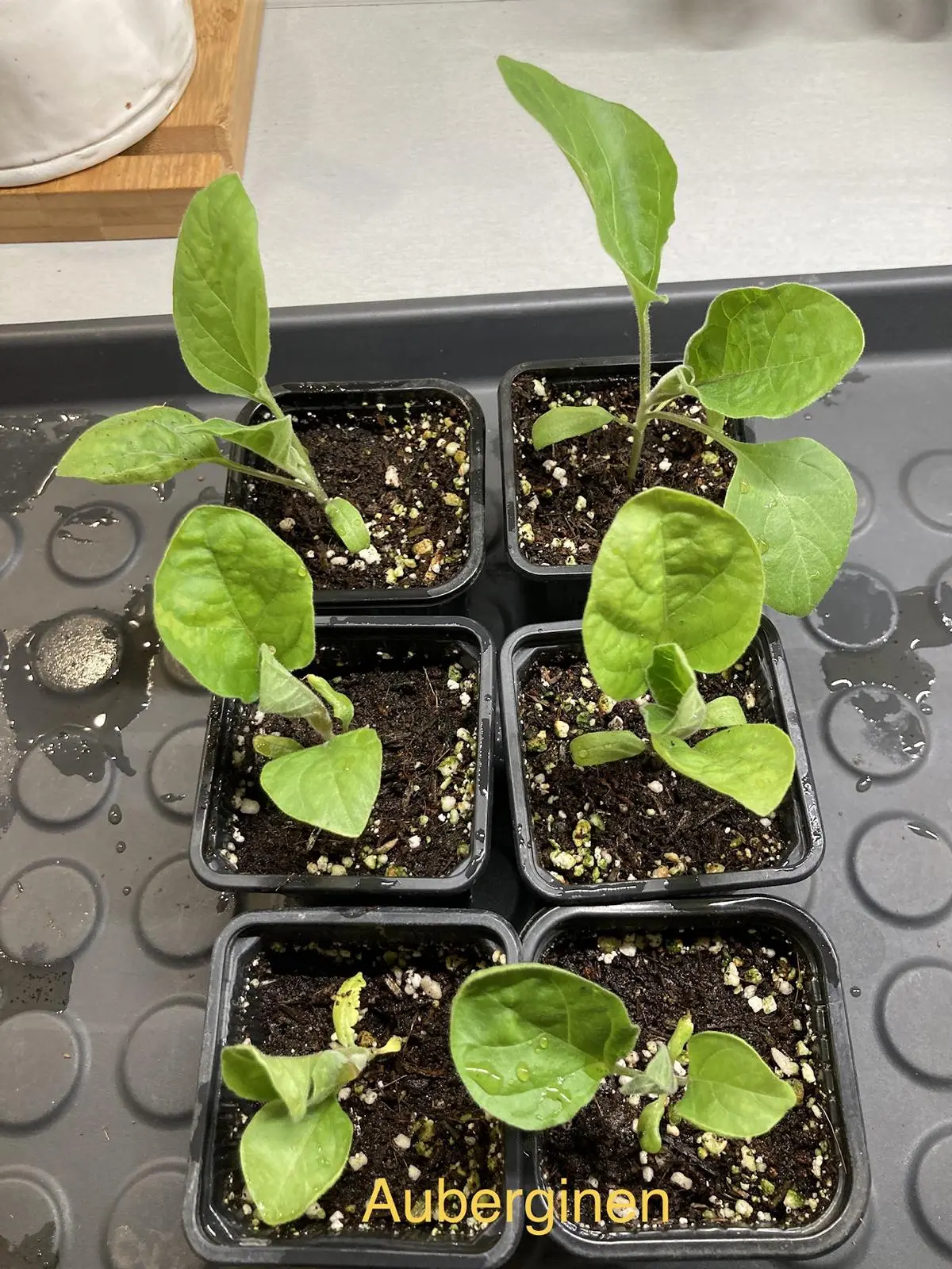 Habe heute auch meine beiden Mini-Auberginen, Samen von @Knofilinchen, und meine beiden Ananaskirschen umgetopft. Haben nun einen 1l (Aubergine) bzw. 2l -Topf (Physalis) bekommen. Schön angedüngt und nun auf Sonne hoffen.