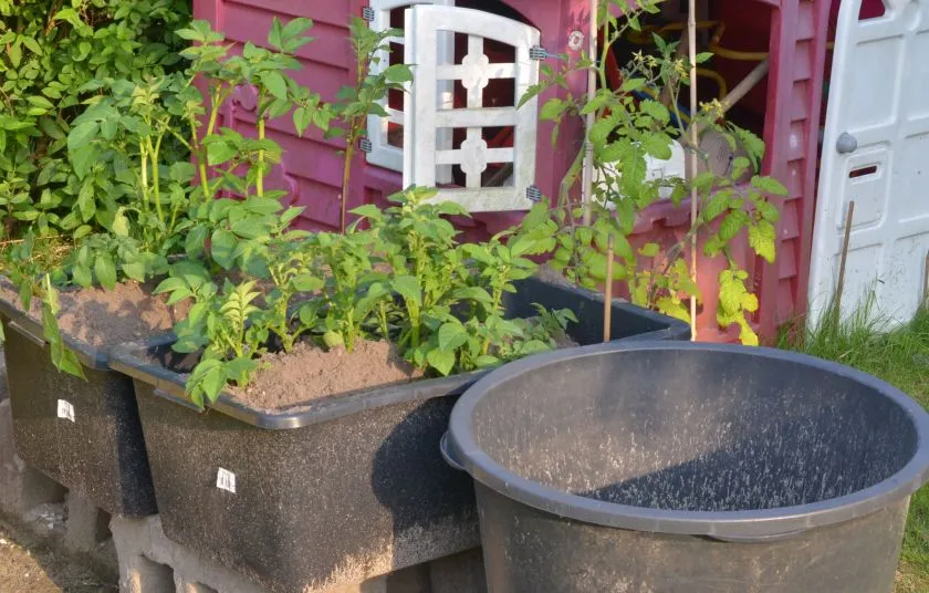 Hab mich nun entschieden, pflanzsäcke zu benutzen. Zwischendurch hatte ich überlegt, einen kartoffelturm zu machen.