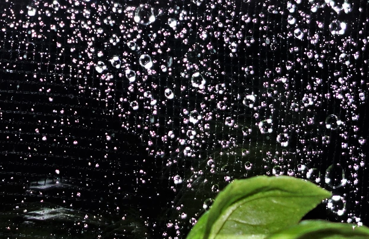 Küchenfenster heute. Regen knallt außen aufs Fliegennetz ...