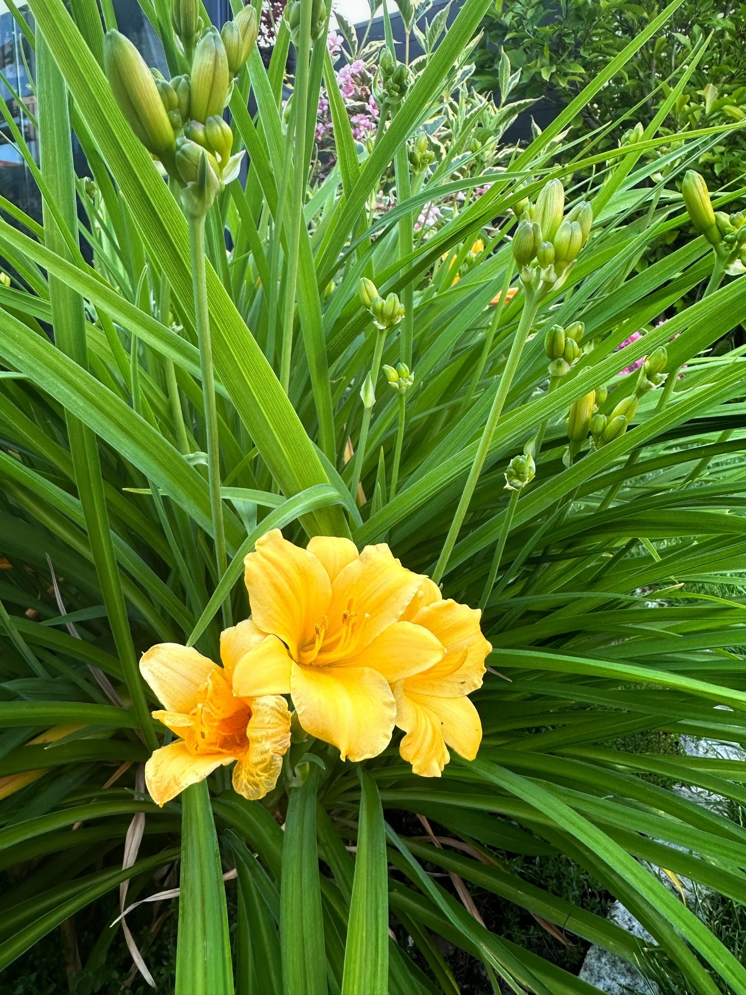 Heute morgen Gras gemäht und gegossen und wenn die Temperaturen angenehmer werden, schwinge ich noch etwas die Rasenschere.