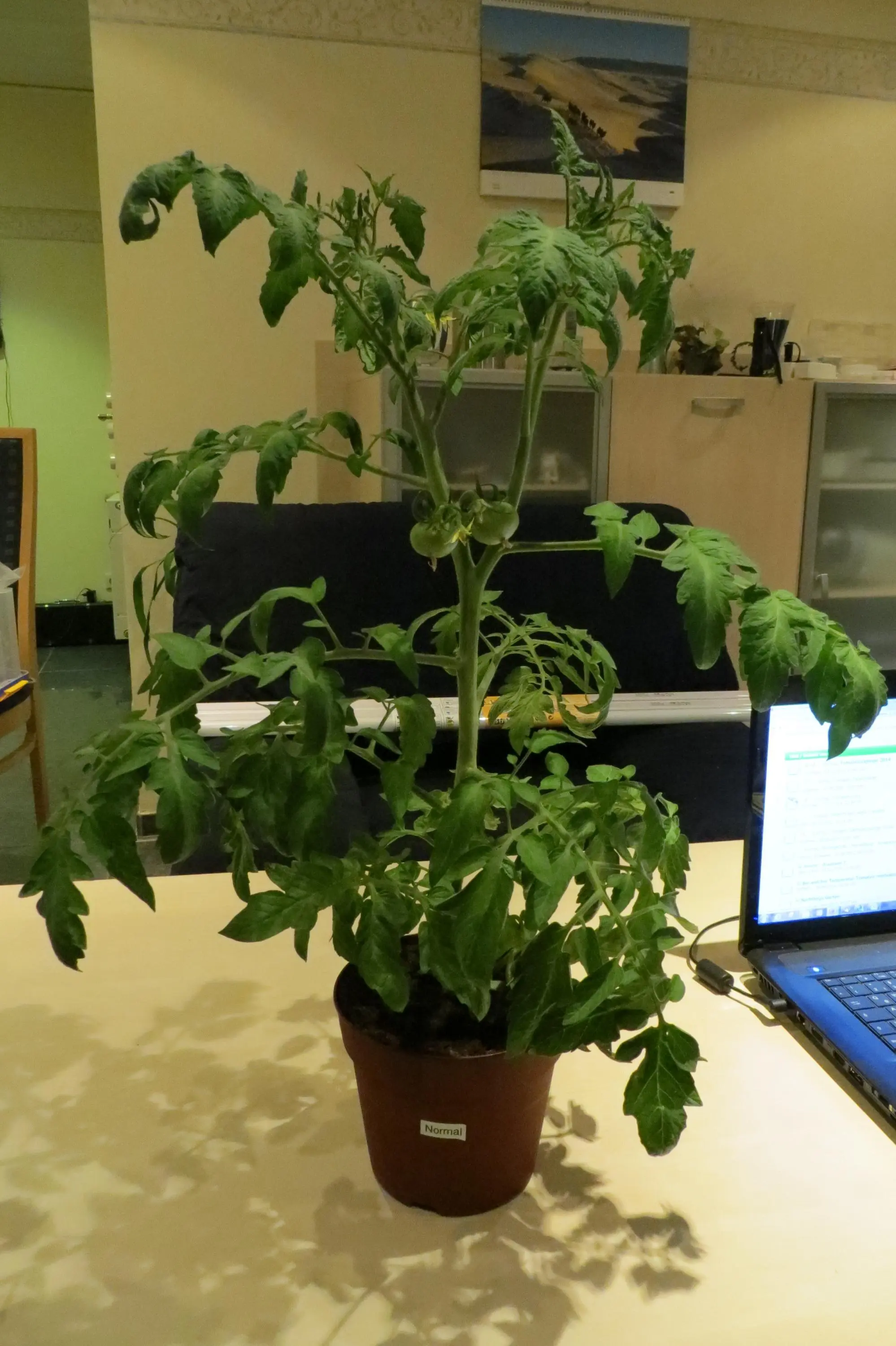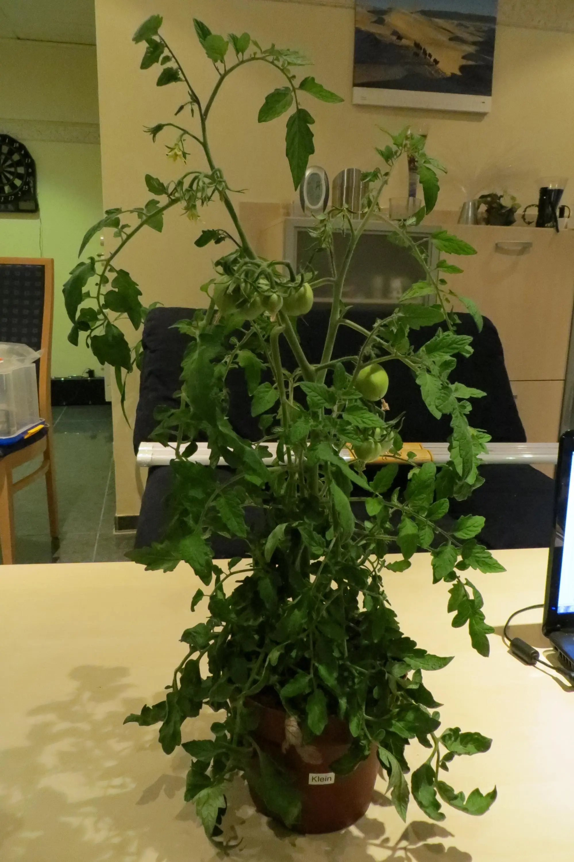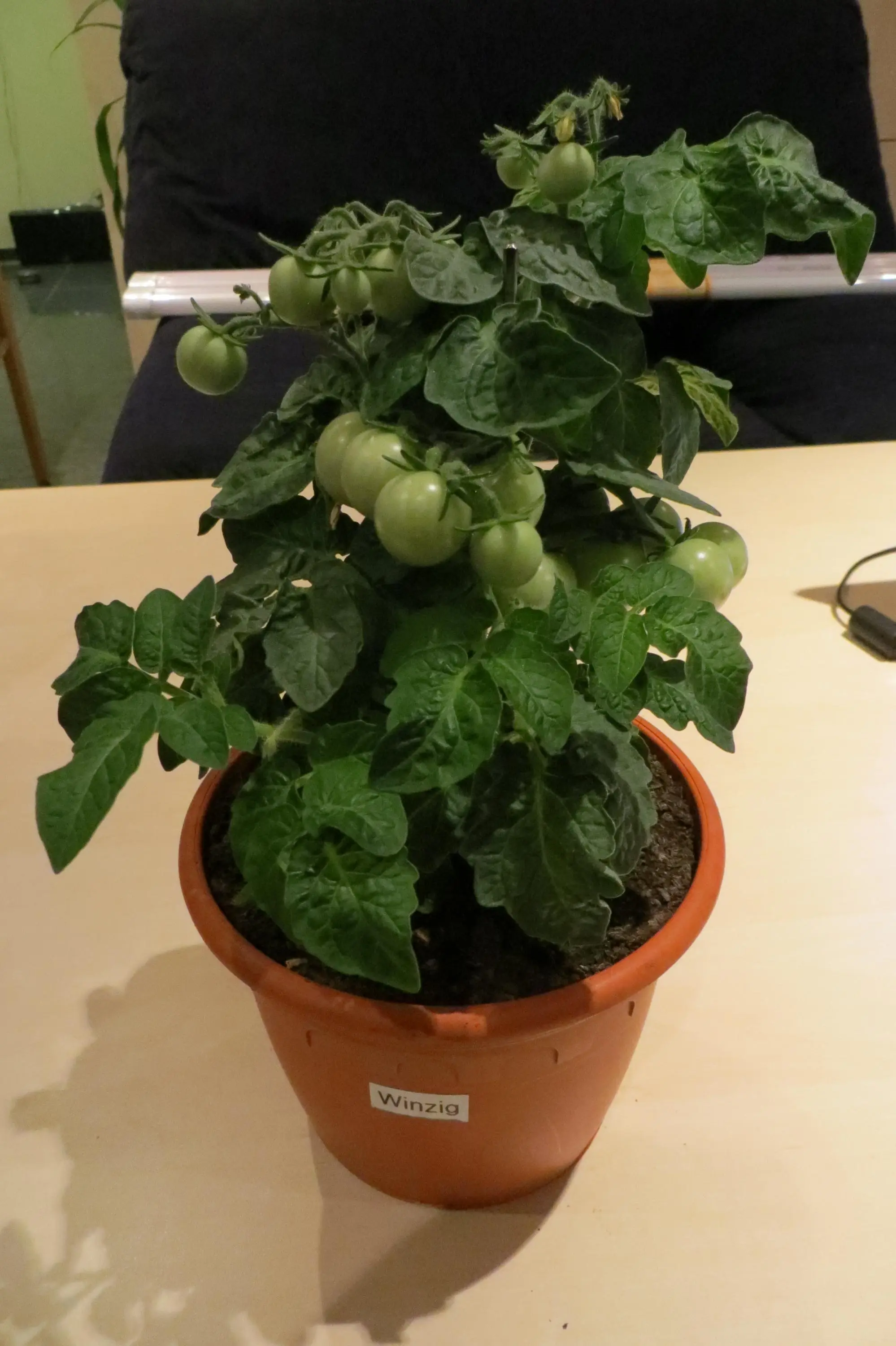 Und jetzt noch der Winzling der weiterhin unter der alten Kunstlichtstation steht und den anderen Tomaten jetzt als Vorbild gilt.