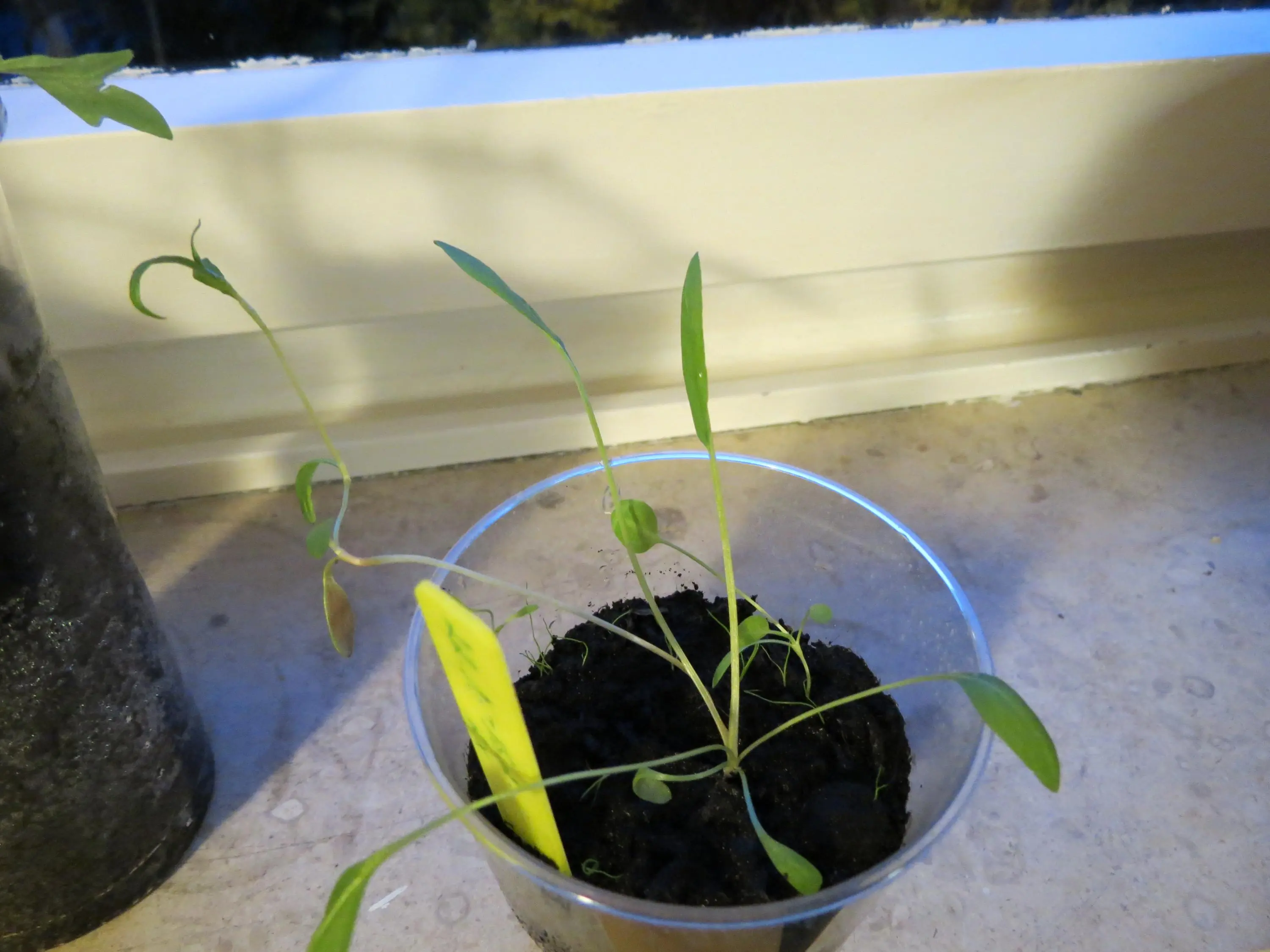 Heute haben beide neue Schuhe bekommen (Winzling hat die abgetragenen von Klein bekommen...). Kunstlicht gibt es schon seit Wochen keines mehr. Aber abgehärtet wird auch noch nicht. Waren nur zum Umtopfen draußen und fürs Foto. Ansonsten Südfenster.