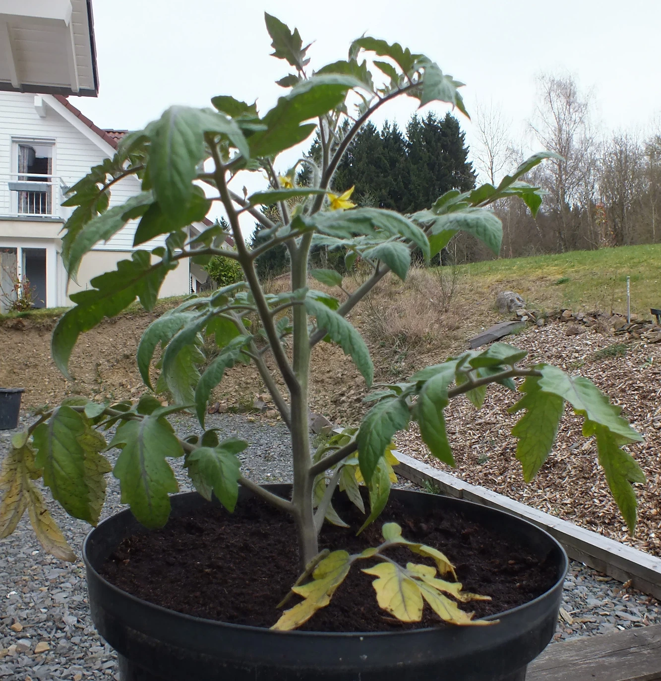 Hier einmal ein aktuelles Bild meiner Kleinen, die im Wintergarten bleiben durfte. Die andere musste mit den anderen Tomaten raus. Ich finde sie hat sich toll entwickelt!