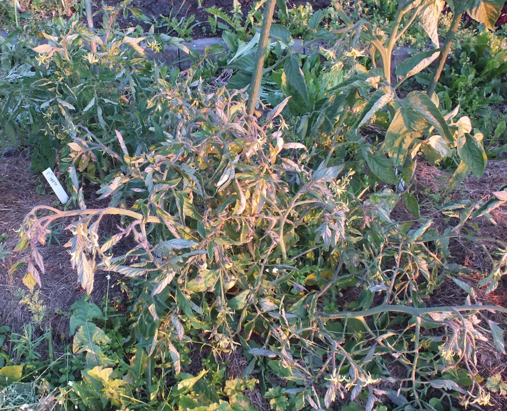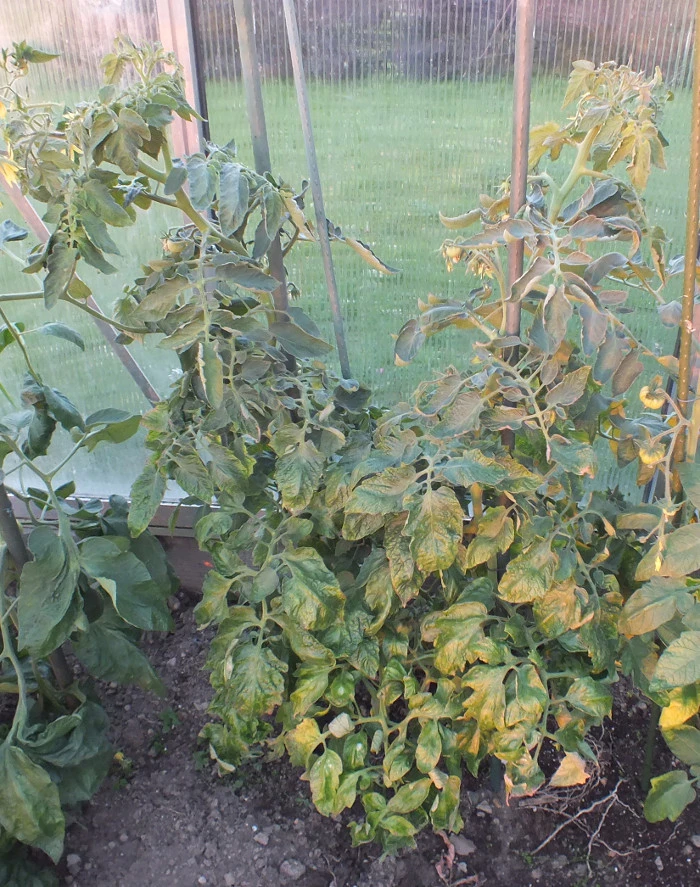 So, mich hats erwischt. Die draußen Kleine hat Braunfäule bekommen. Die im Wintergarten ist noch fit.