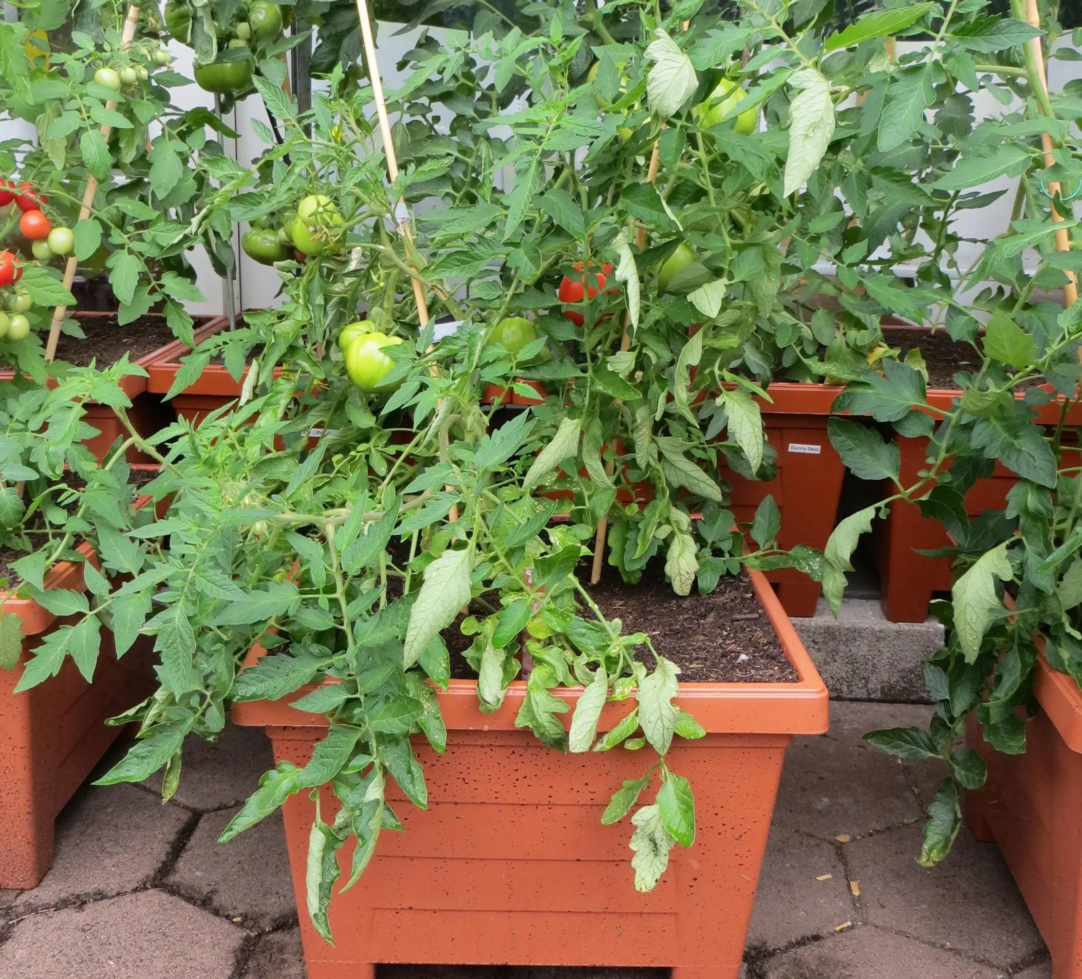 Bei Bonny wurde ich mir ein wenig mehr Fruchtwachstum und Blüten wünschen. Bis zur ersten Ernte dauert es wohl noch.
