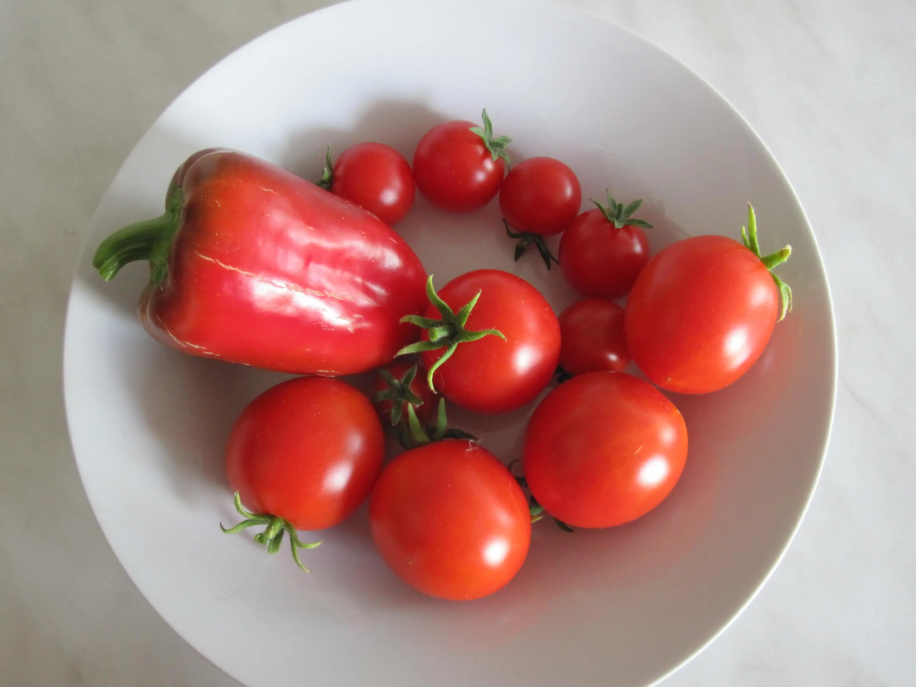 Und hier noch ein Erntebild (die 5 "großen" Tomaten sind von der Iskorka):