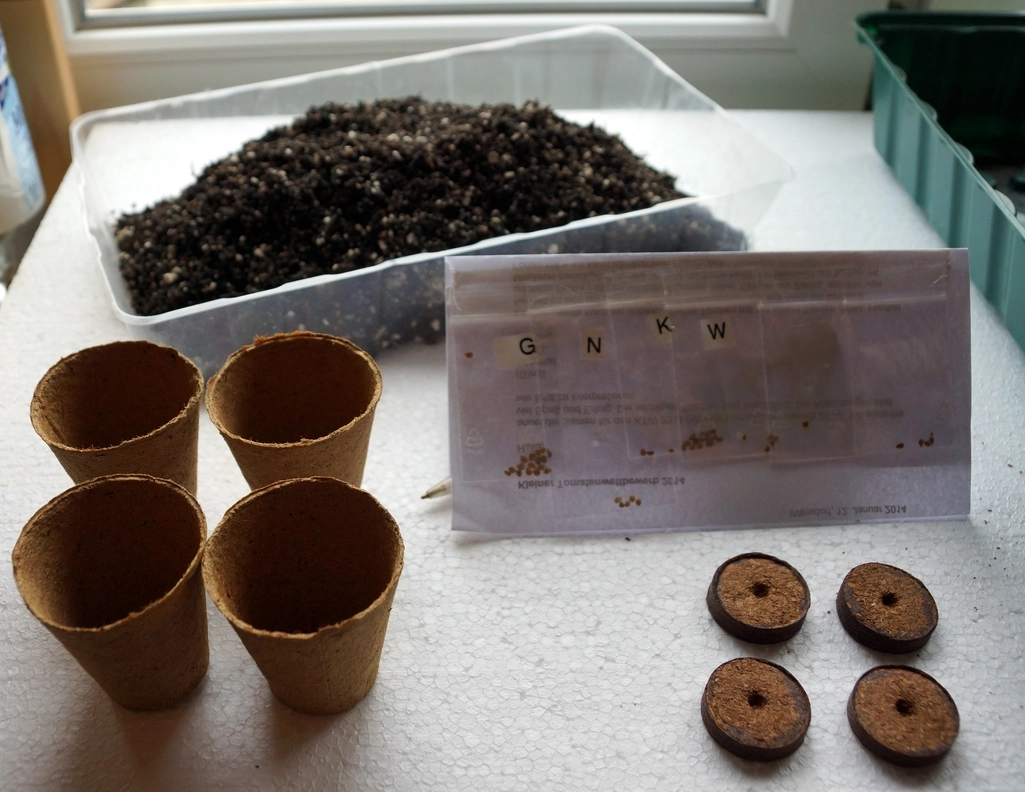 Wie bis anhin: Torftöpfchen gefüllt mit Anzuchterde die ich mit Perliten und wenig Sand strecke. Variante zwei ist mit Torftabs.