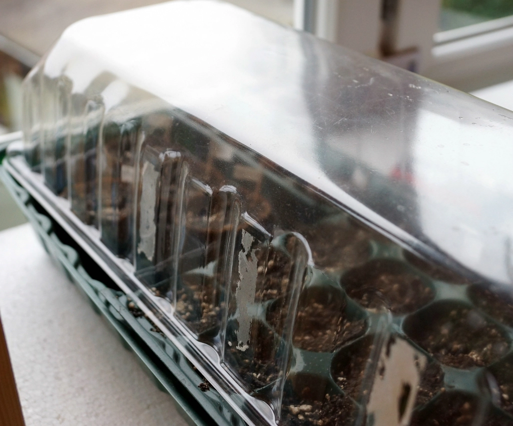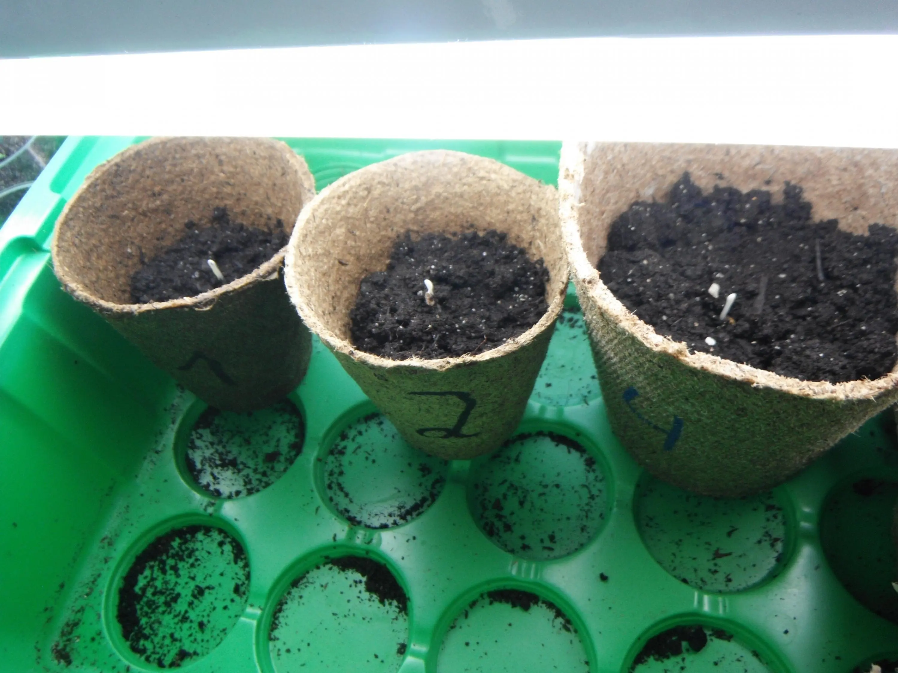 Töpfchen, wie Tabs gut gewässert, je einen Samen von jeder Sorte pro Variante einen Zentimeter tief verbuddelt: