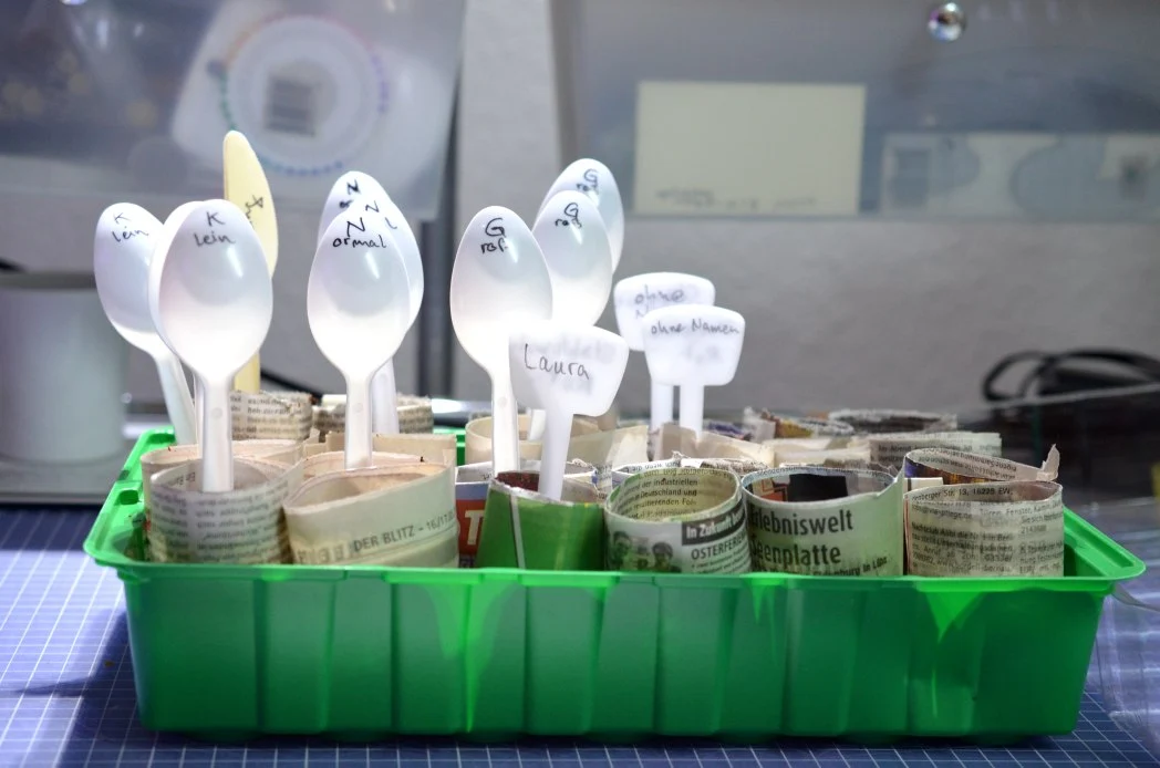 die Winzlinge wurden gestern pikiert und in Tomatenerde gesetzt.