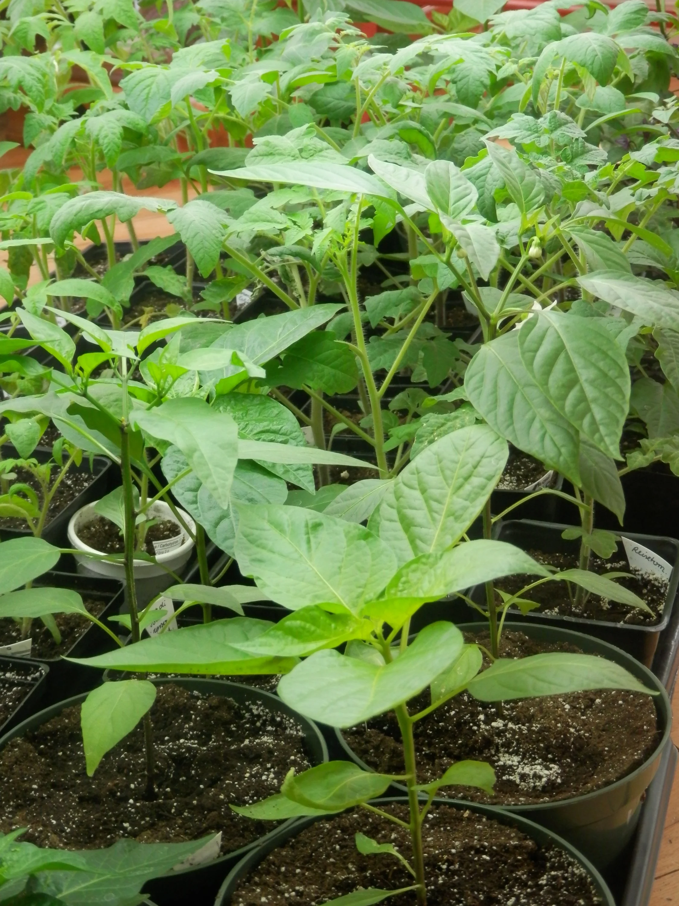 Vor ein paar Tagen durften auch die ersten Grossen auf die Fensterbänke, da gibt es um diese Zeit eigentlich schon genug Licht. Ich denke Tomate, Tomatillo und Paprika geniessen die verschneiten Aussicht