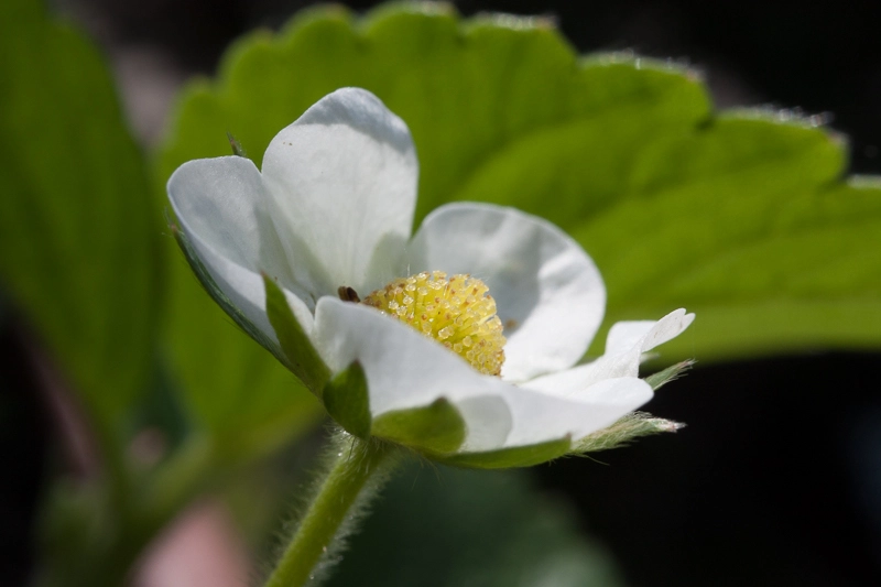 Nicht alle Erdbeerpflanzen, aber doch die meisten blühen fleißig und ich kann auch die erste Frucht auf dem Weg zur Reife verfolgen.