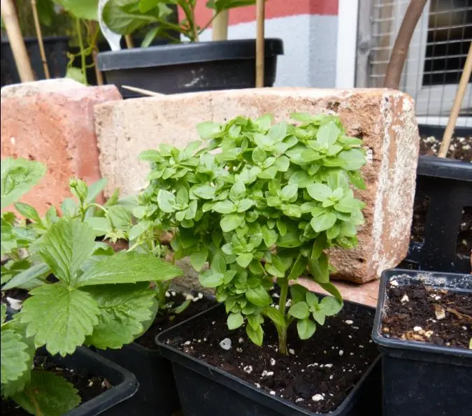 Zitronenmelisse dazwischen fördert eigentlich alle anderen Kräuter , genauso wie Basilikum