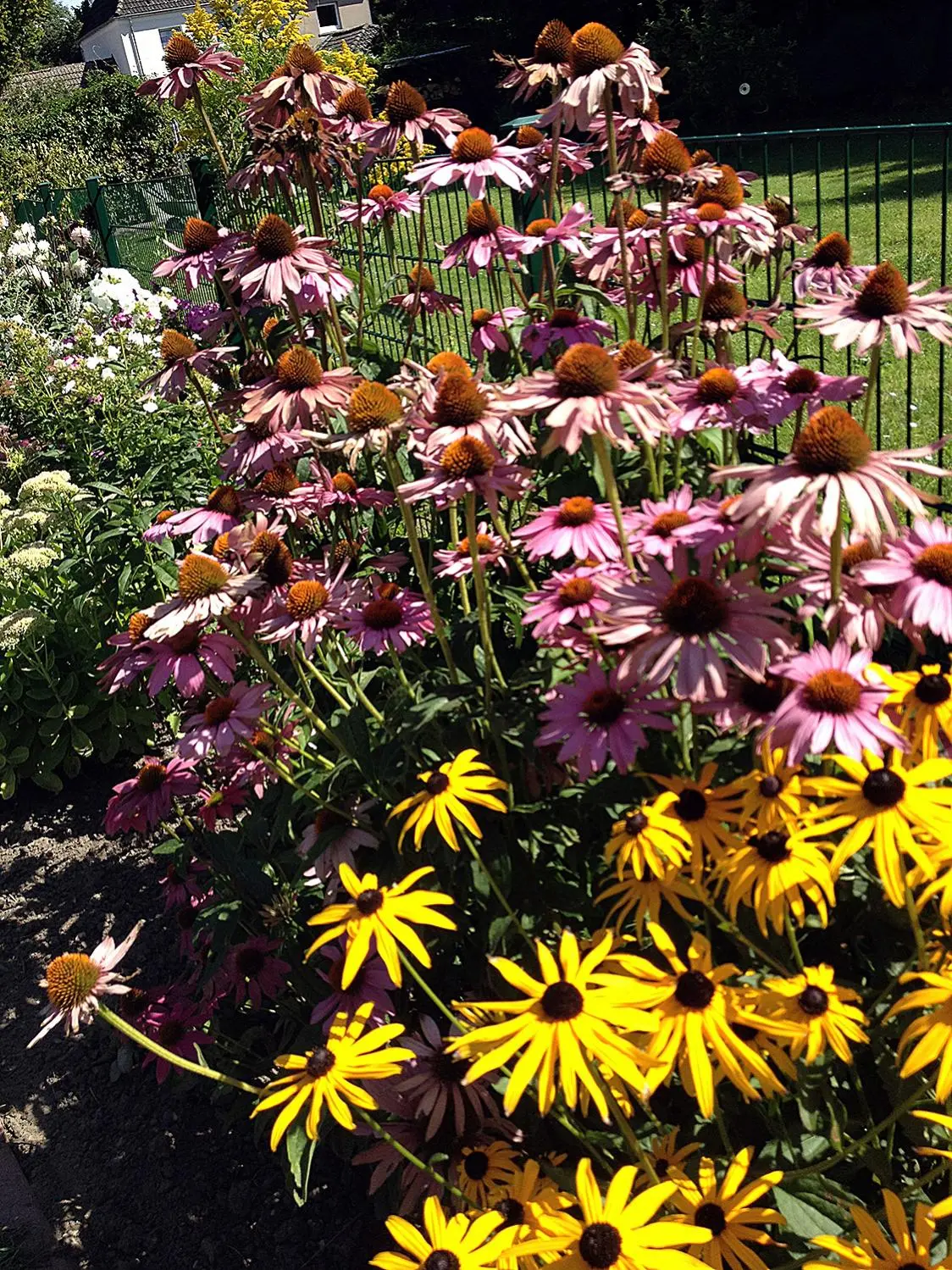Die gute Nachricht: im großen und Ganzen treibt alles wunderbar aus, und man sieht, dass viele der vor- oder vorvorjährigen Staudenneuanpflanzungen sich richtig schön ausbreiten. OK, manche (z.B. der Balkan-Storchschnabel) viel weniger als erwartet, da werde ich wohl noch mal 2-3 Pflänzchen nachsetzen, damit es schneller dicht wird, aber insbesondere die großen (Phlox, Echinacea, Rudbeckia, Glockenblumen, Geißbart, Astilben und und und) bilden immer dichtere und größere Horste.