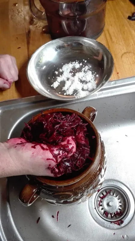 Ich habe auf 1 kg Roter Bete 20 gr. Salz zum einkneten genommen ,