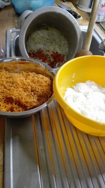 einfach alles raspeln einschichten und Salzwasser drüber, heute wird das erstemal probiert