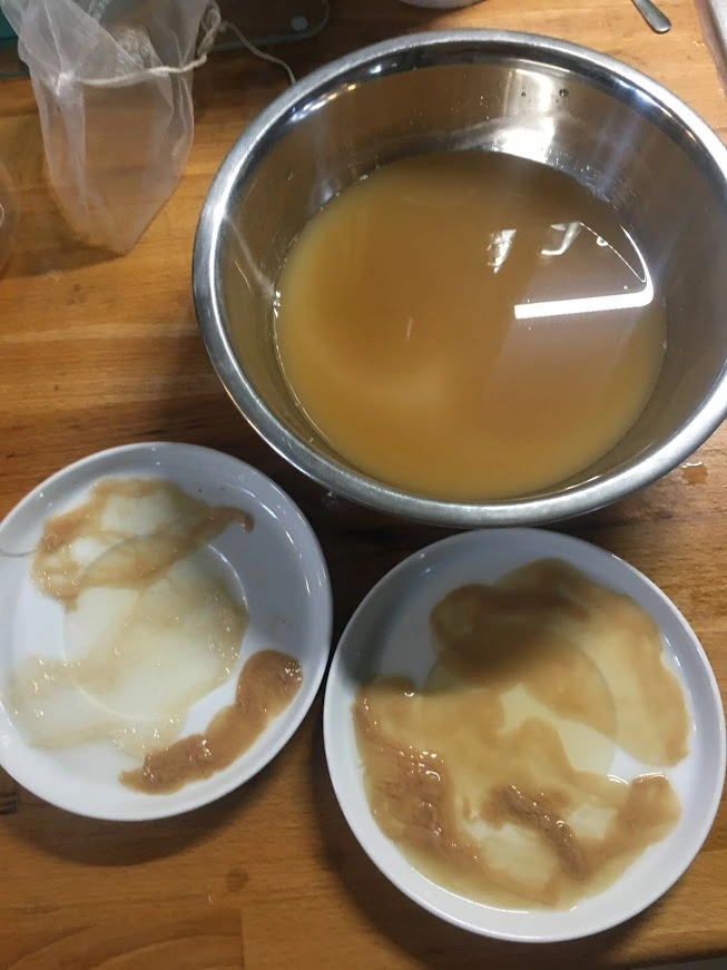Die Essigmutter in ein Haarsieb abgegossen