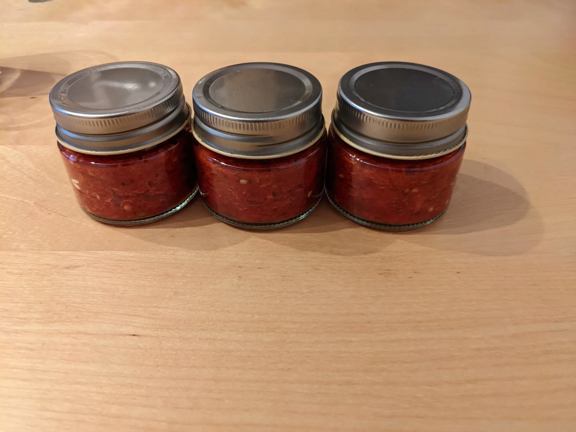 Genau, Danke. So meinte ich es.Die Frage ist, ob Elis ihre Chilipaste fermentieren wollte, oder ob sie sie einfach durch den hohen Salzgehalt konservieren wollte, ohne dass sich die Chilis noch umsetzen.