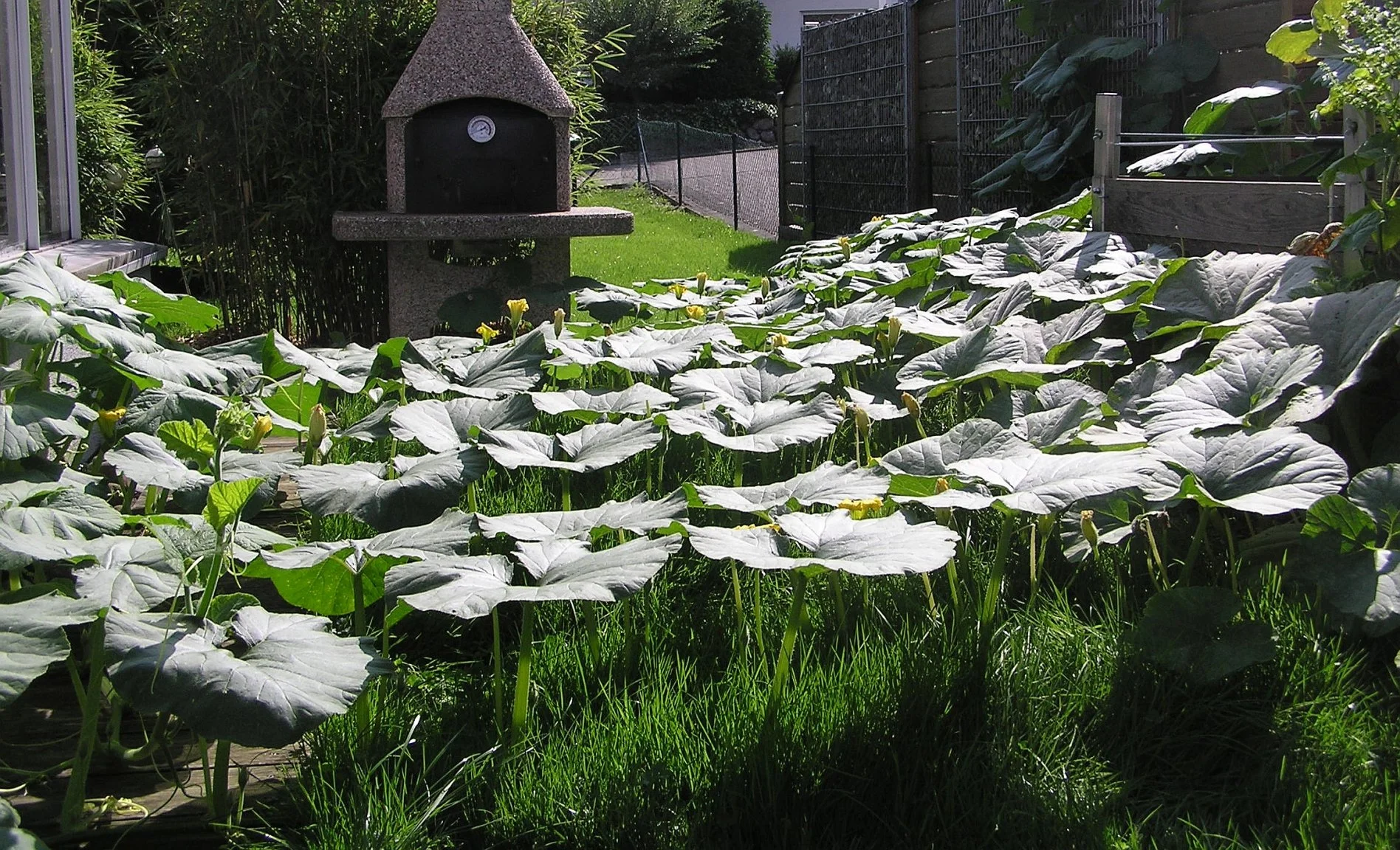 • Dieses Jahr habe ich den Kürbisanbau zu Gunsten der Tomaten sehr reduziert. Dazu sind eigentlich nur zwei von fünf Pflanzen gut gewachsen.