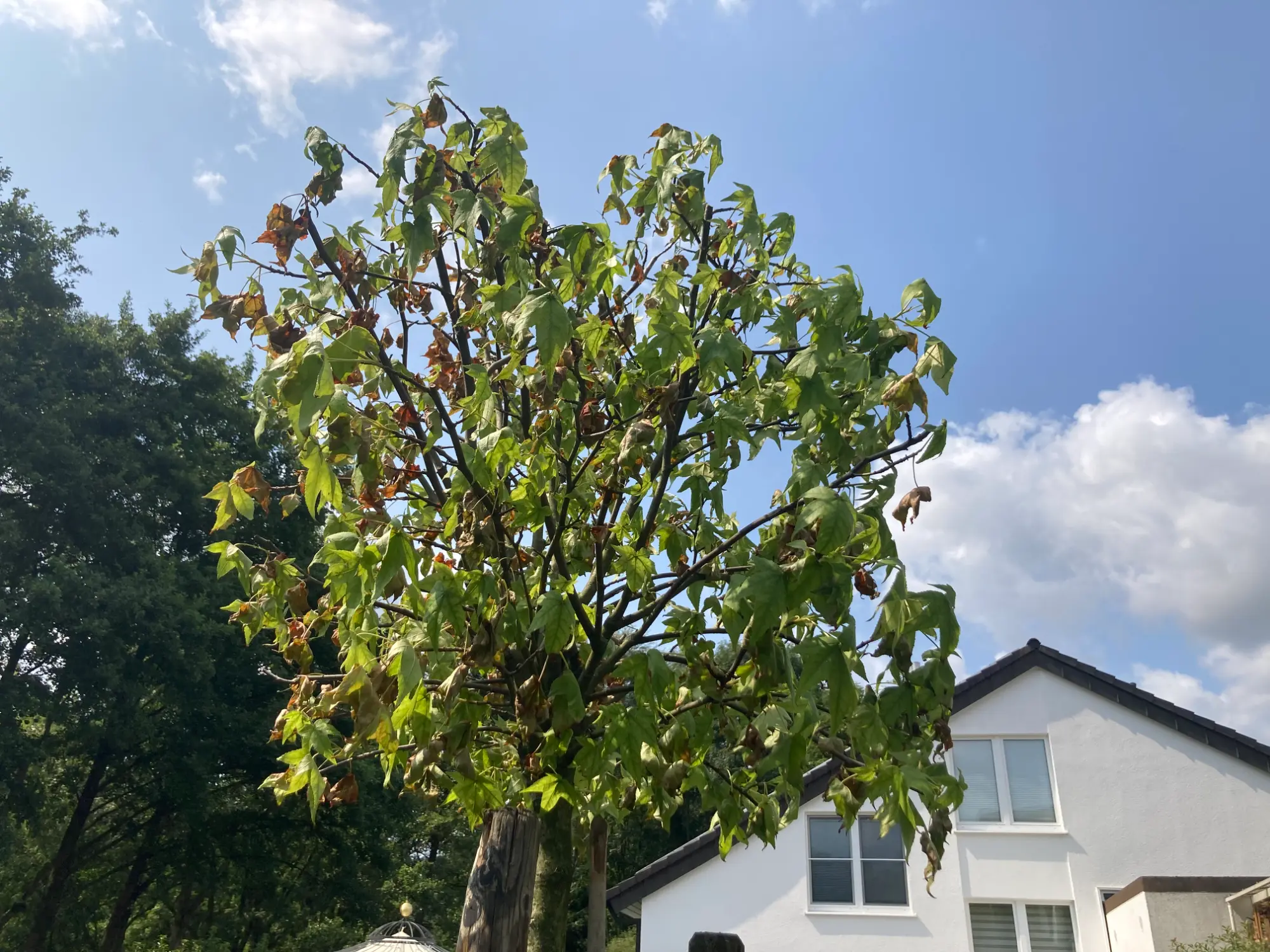 Sieht nicht gut aus, trotz dem Schnitt eines Experten - du hat drei gleiche Kugelamberbäume stehen, zwei sehen normal aus, wie halt ein Amber um diese Zeit aussieht und gut wächst, sind mit Standort, Erde, gießen zufrieden, der eine schwächelt, also können Pilze und dergleichen nicht die Ursache sein..., meine Meinung nach langer Beobachtung hier.