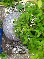 Angrenzend ist steht ein riesiger Glanzmispelbusch, der hat voll seine angegebene Breite und Höhe erreicht.
