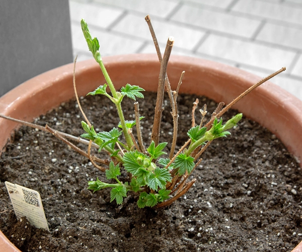 Momentan steht dann noch, im Eingang, der Topf mit den Hopfen. Der wird aber, wenn wärmer, wieder auf den Schattenbalkon umziehen. Der Hopfen stand ursprünglich in einem der hohen, grauen Töpfe, was ihm sicherlich auch nach wie vor bessern tun würde, aber im letzten Jahr hatte ich dann andere Pläne, also musste er umziehen. Je nachdem, was ich in diesem Jahr an freien, höheren/größeren Töpfen übrig haben werde, pflanze ich ihn ggf. auch wieder um. Ich überlegte eigentlich, ob ich ihn ganz rauswerfen soll, aber nun treibt er gerade wieder so wunderbar aus, da bringe ich es nicht übers Herz.