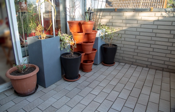 Gestern schaffte ich es tatsächlich, die Balkone mal so "aufzubauen", wie sie tendenziell belegt werden könnten. In den Töpfen und Kästen ist bisher natürlich quasi nichts vorhanden, aber nun weiß ich, was ich ungefähr wohin packen könnte. Den extrem chaotischen, dreckigen und traurigen Anblick vom Schattenbalkon erspare ich euch - da wartet noch viel Arbeit auf mich - aber den vom Sonnenbalkon wage ich, wenngleich es auch dort noch recht trübe wirkt: Tomaten, Chilis & Co fehlen noch, kaum ein Kasten und Topf ist gesäubert und diese 60er-Jahre Maueroptik ist ja sowieso einfach nur gruselig, wie ich finde.