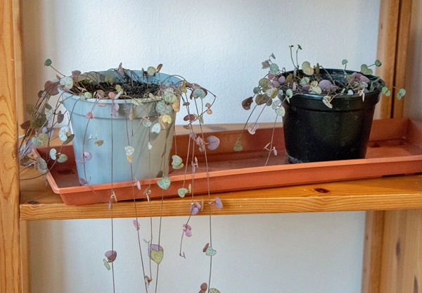 Die Ceropegia wodii hat es leider nicht wirklich überlebt. Also, der klägliche Rest in dieser Schale. Für einen Rettungsversuch war es offensichtlich schon zu spät. Ich habe zum Glück noch zwei andere Töpfchen mit Ablegern. Das sind aber eher "Reste", nicht lauter gut gewachsenen Pflanzen, wie die ursprünglichen. Sprich: Ich muss mit dem Wiederaufbau wieder ganz von vorne beginnen. An sich ist das kein Problem - Ableger von ihr wurzeln gut - aber es macht natürlich Arbeit und kostet Zeit, die ich mir hätte sparen können, wäre ich im Chaos nicht so dämlich gegen den Pflanzenständer gekommen. Grrr!