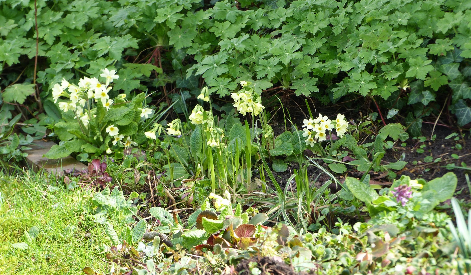 Das sind ja die ganz normalen Schlüsselblumen, die habe ich auch. Über die freue ich mich jedes Jahr.@Linserich, das sind einige der Primeln, die sich vom Beet aus in die Wiese hinein ausgebreitet haben: da wird nichts gedüngt (ist ja Wiese und nicht Rasen); auch die obige Prachtprimel - sie wächst im Kiesbeet am Teichhang - wird nicht gedüngt.