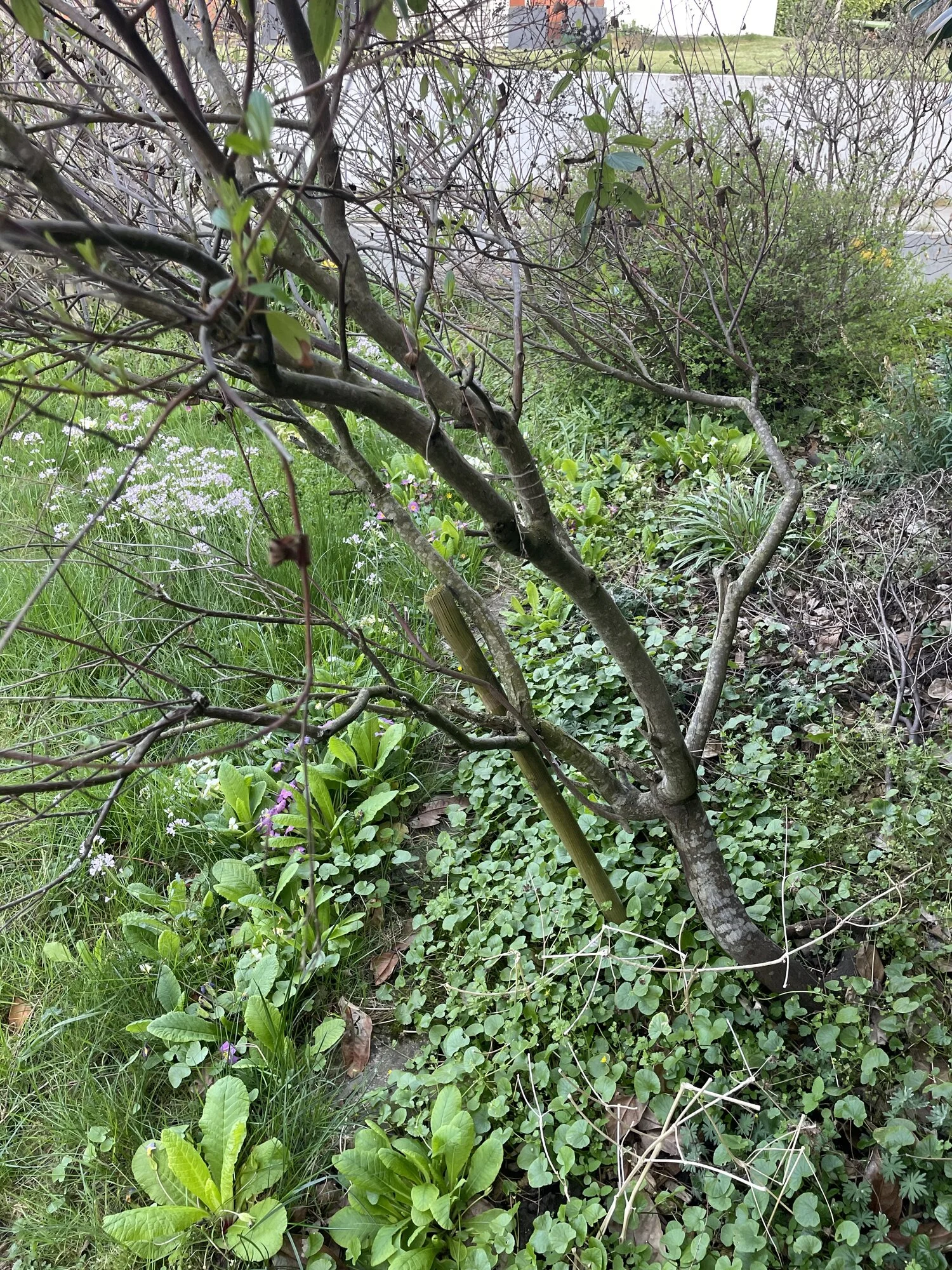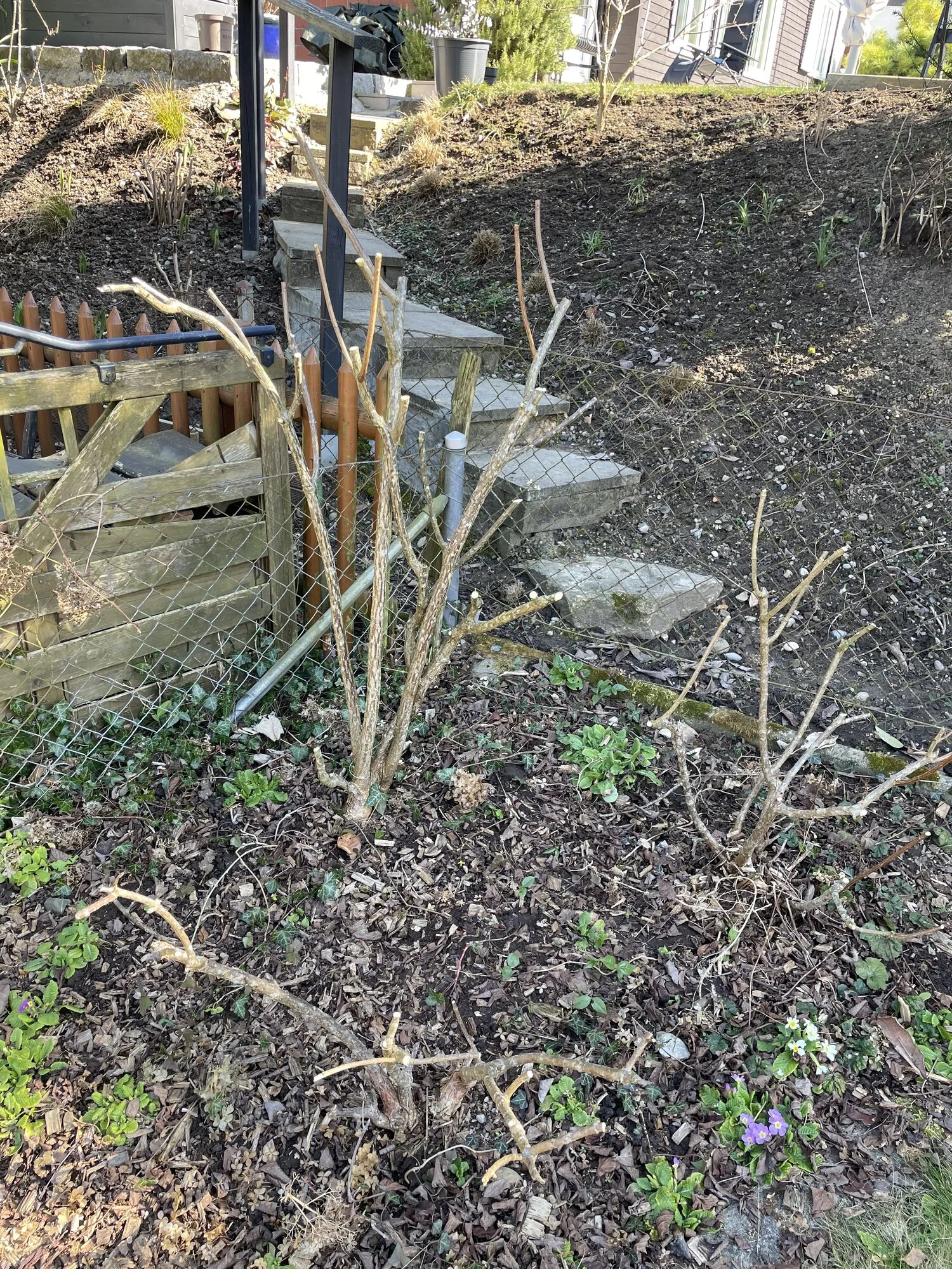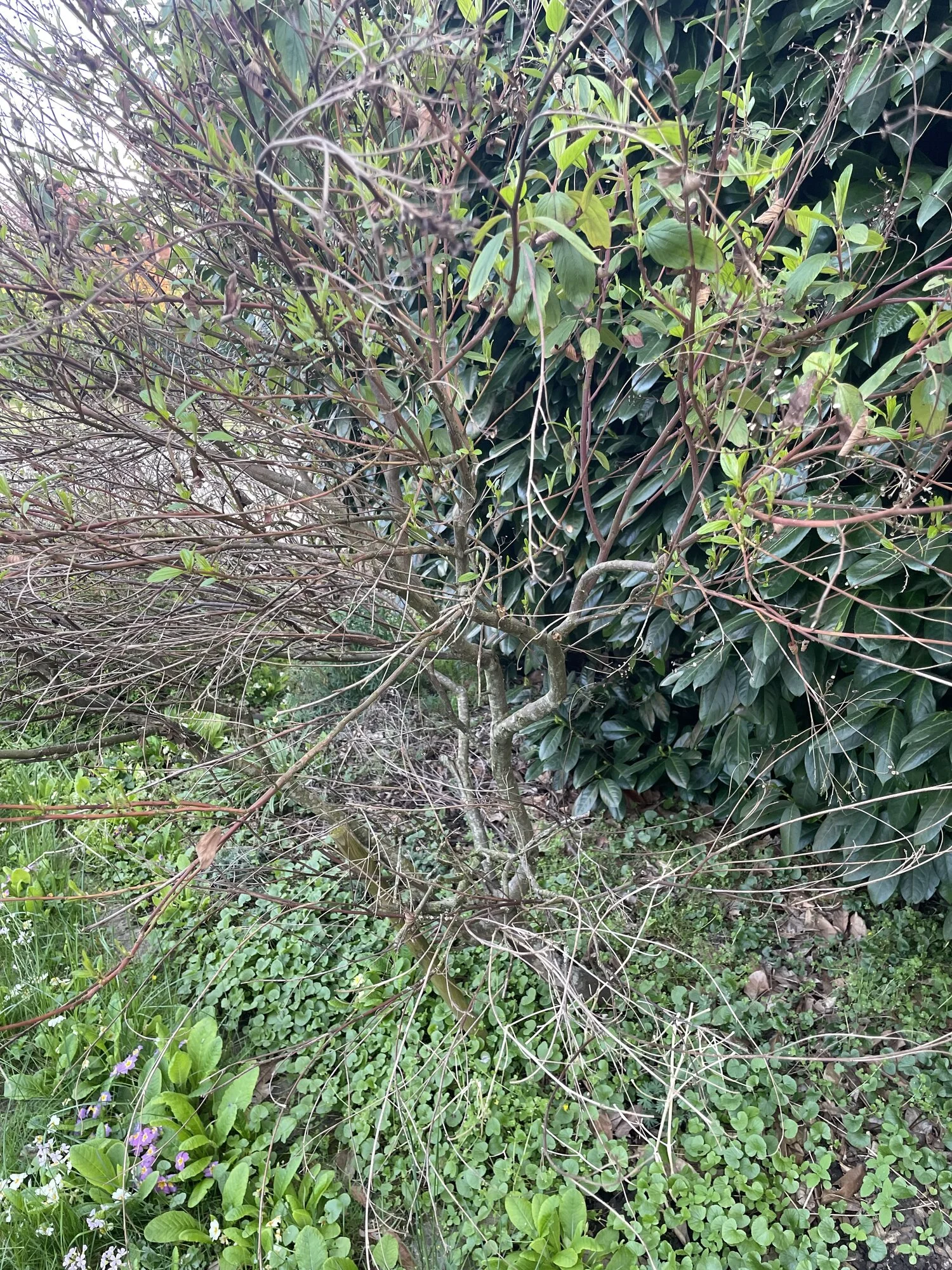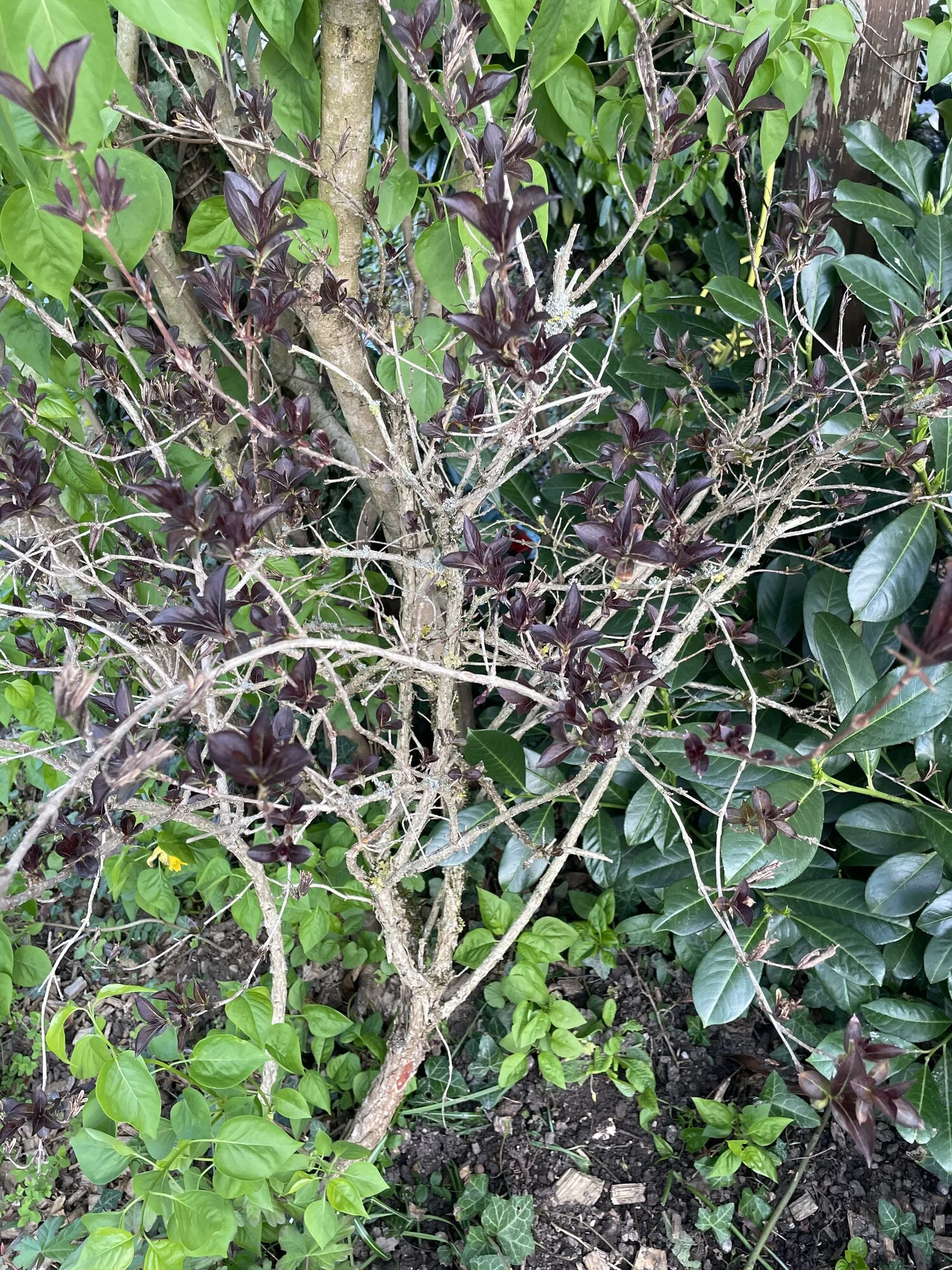 Dann diese rotblättrige Weigelie (?), sie ist sehr vergreist. Ich würde sie gerne radikal runter schneiden. Geht das oder lieber was anderes?