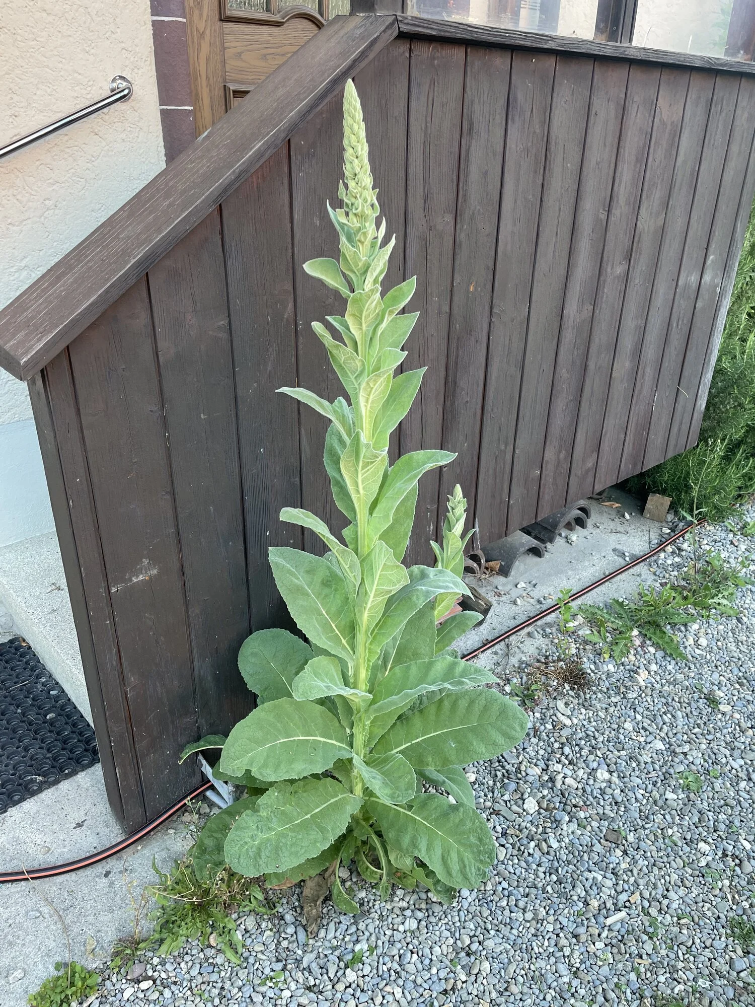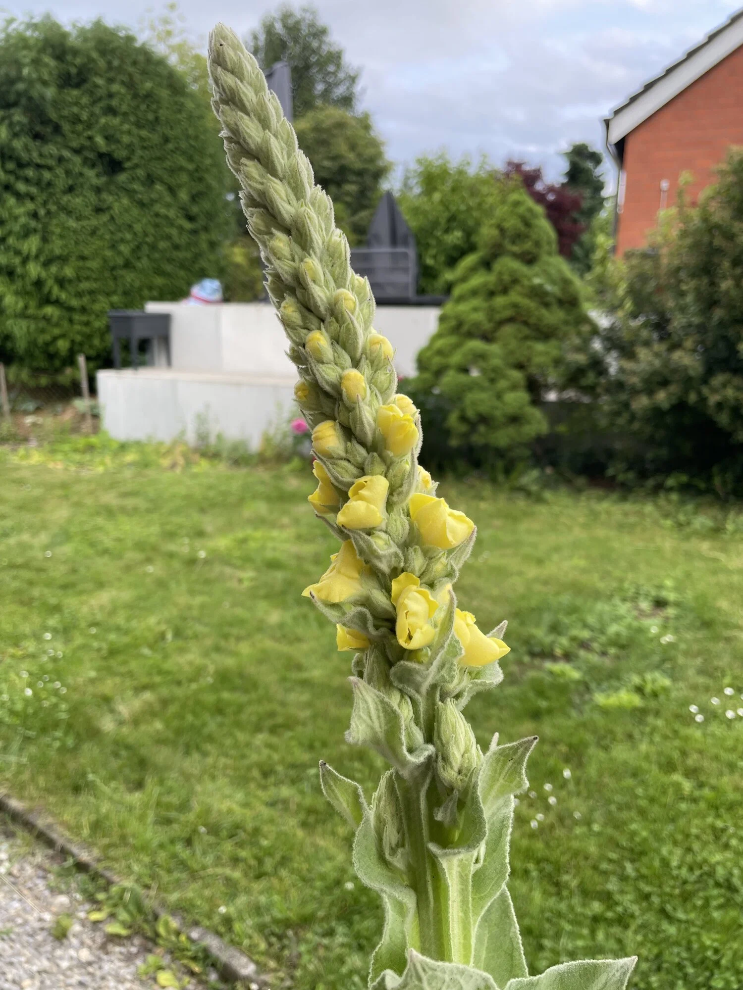 Unsere Königskerze ist im Weg gewachsen. Zum Glück steht sie nicht im Weg.
